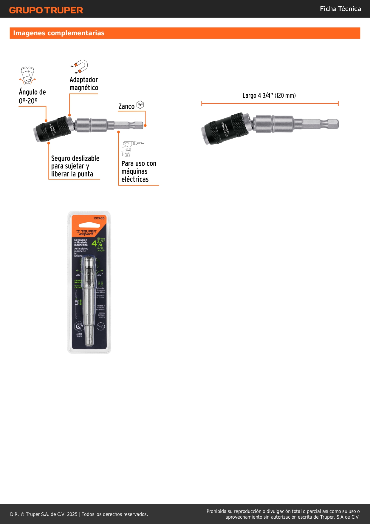 Longitud de 120 mm: La longitud del adaptador suele ser de 120 mm, lo que proporciona un alcance adicional para trabajar en lugares profundos.
