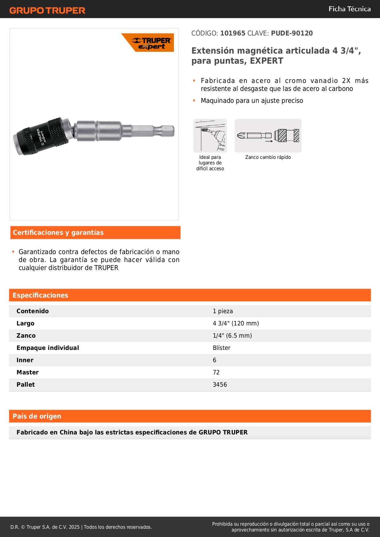 Adaptador articulado de 120 mm magnético para puntas, expert truper
