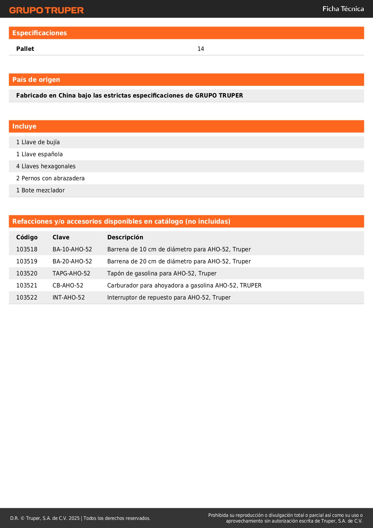 Ahoyadora / motoperforadora a gasolina 52cc, Truper