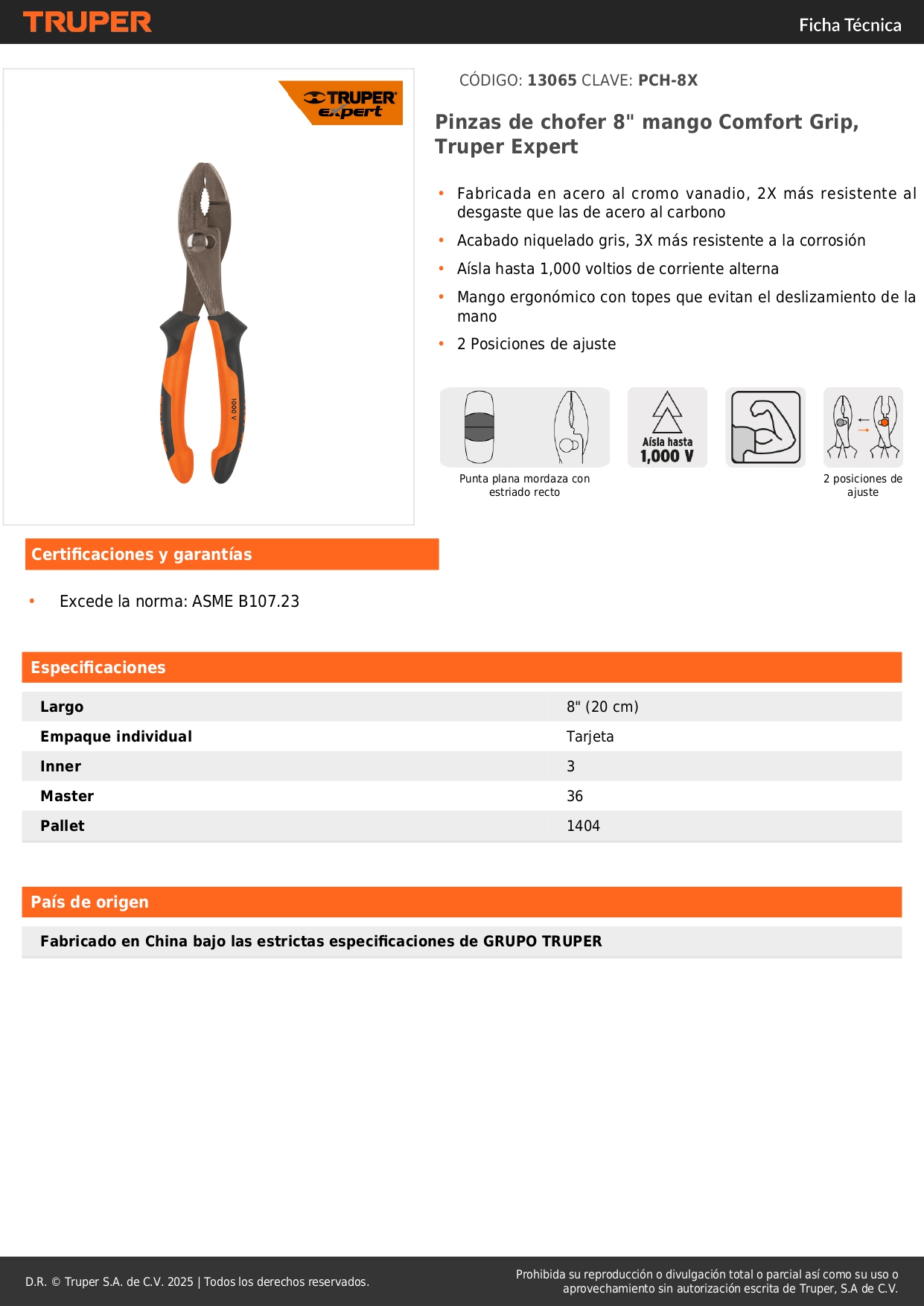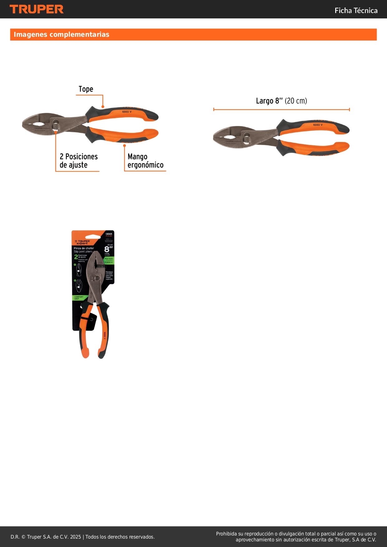 Alicate de mecánico 8'' mango comfort grip truper expert