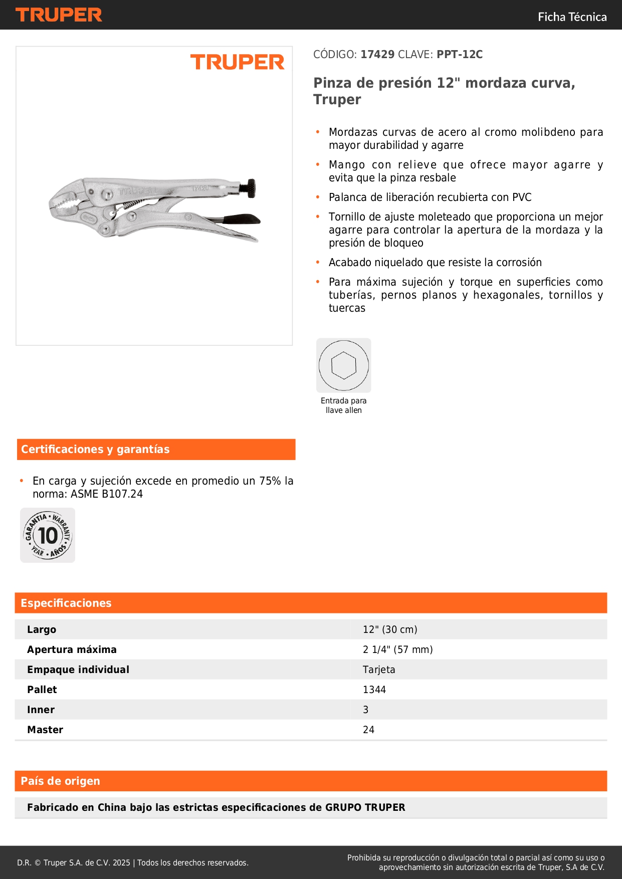-Mango con relieve que ofrece mayor agarre y evita que la pinza resbale