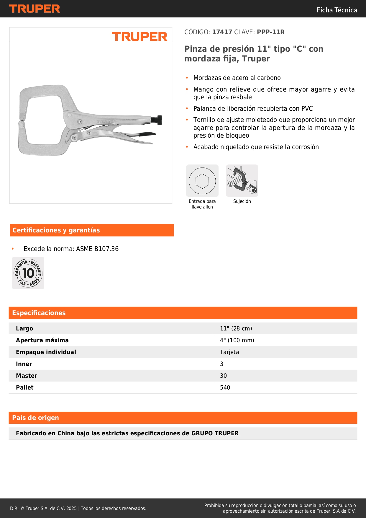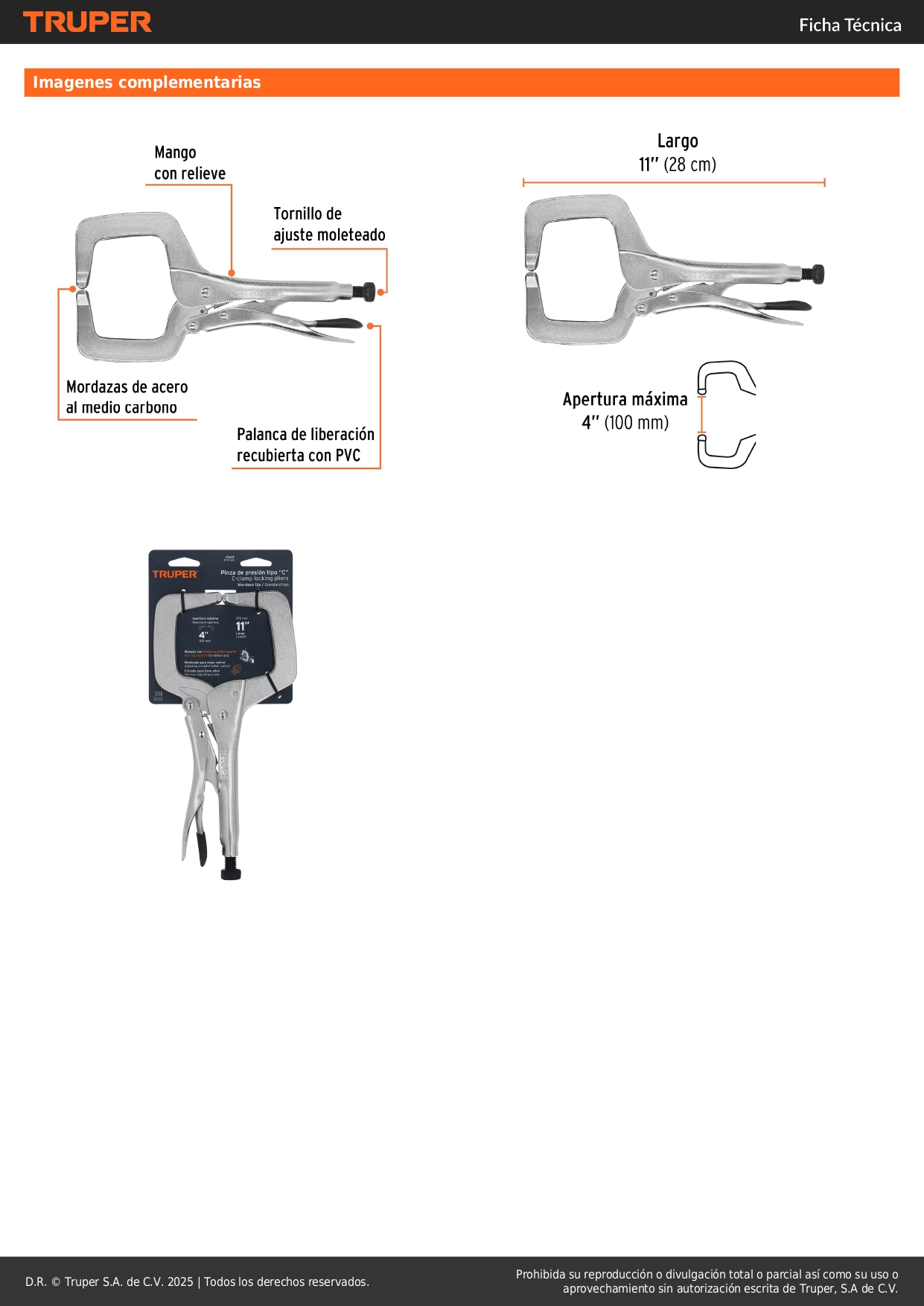 Alicate de presion tipo c mordaza fija 11