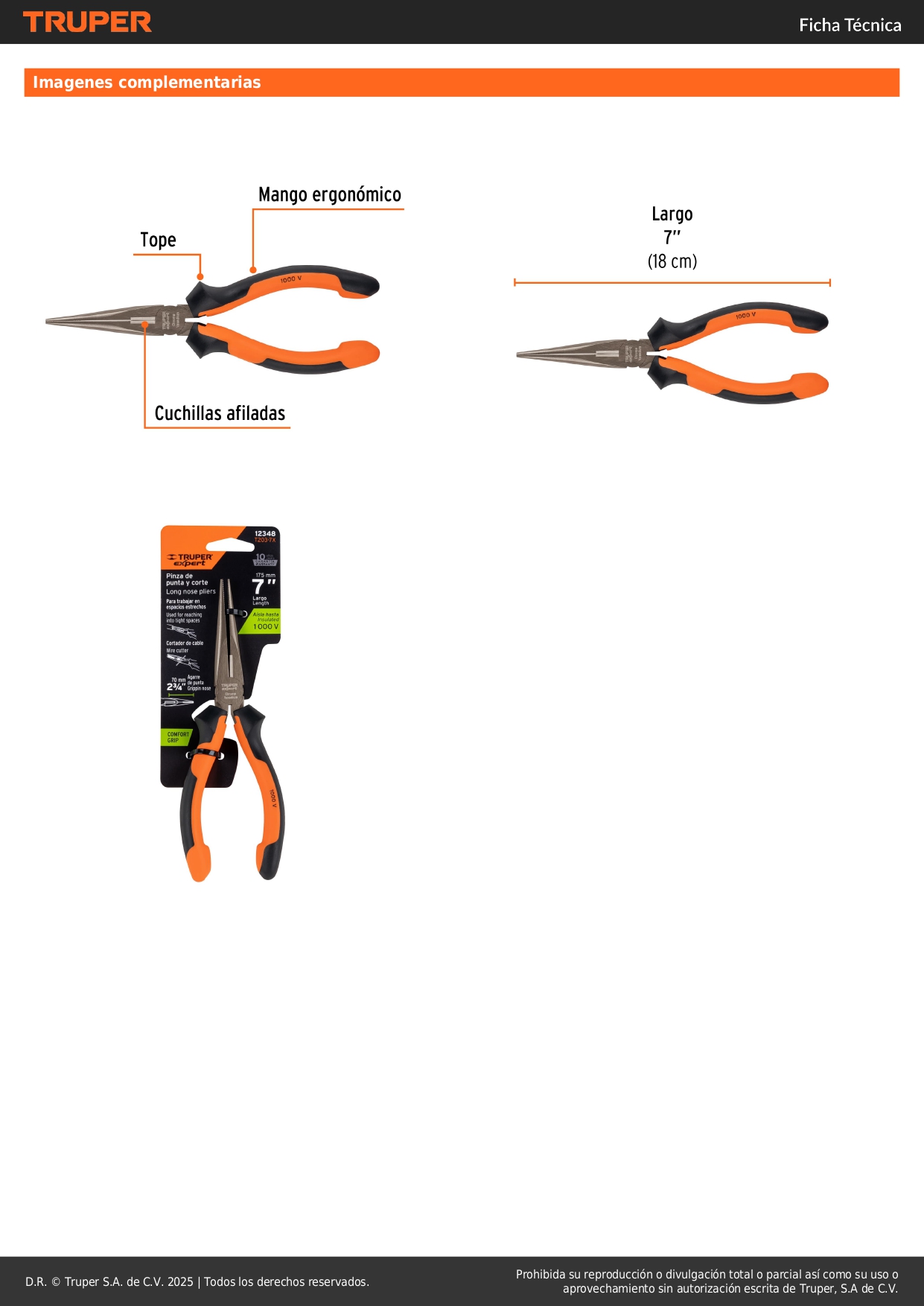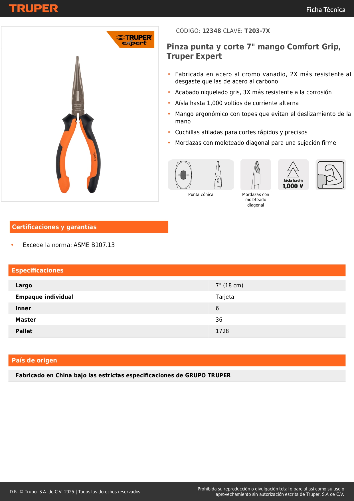Alicate de punta y corte 7'' mango comfort grip expert truper
