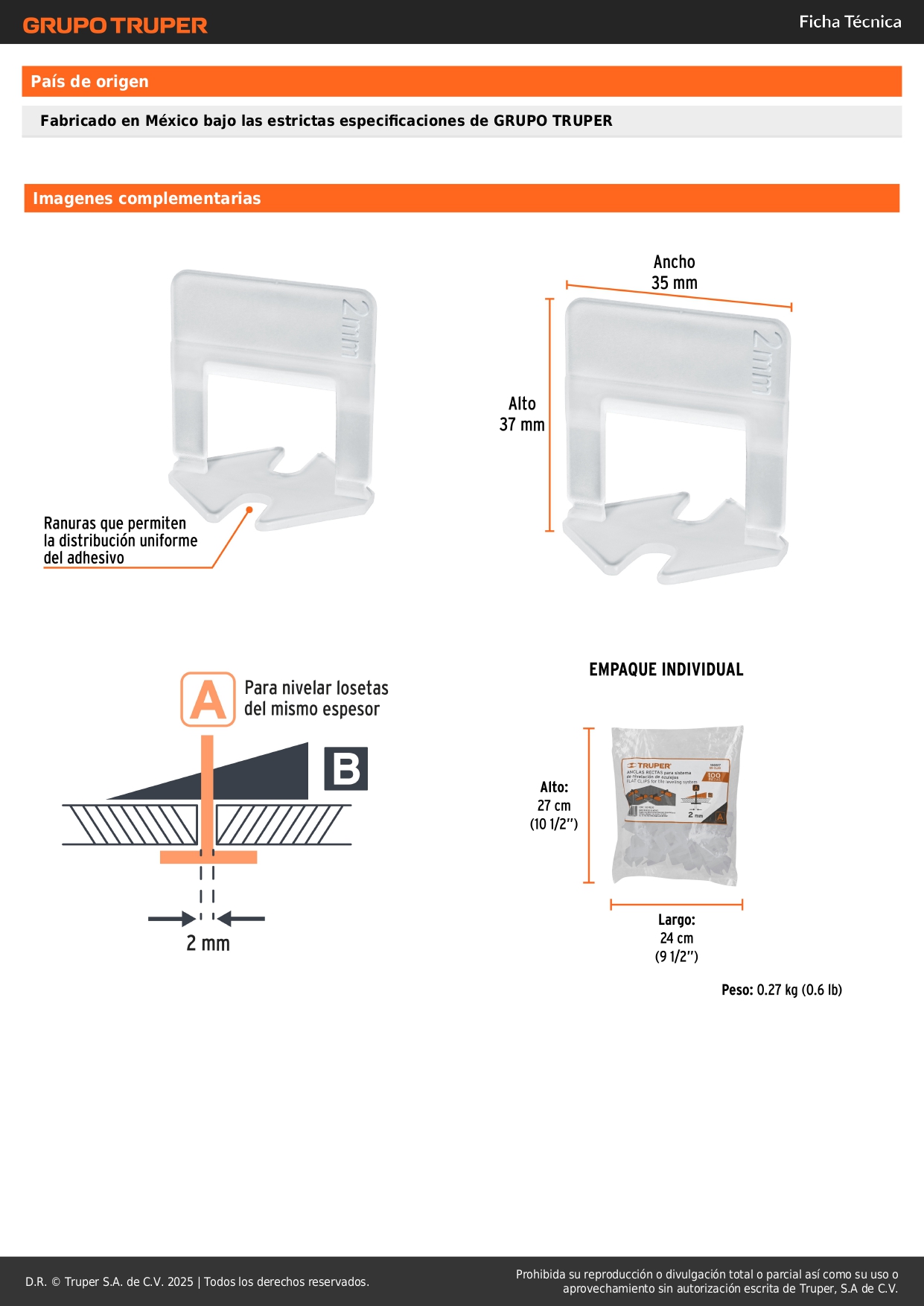 • Ranuras que permiten la distribución uniforme del adhesivo