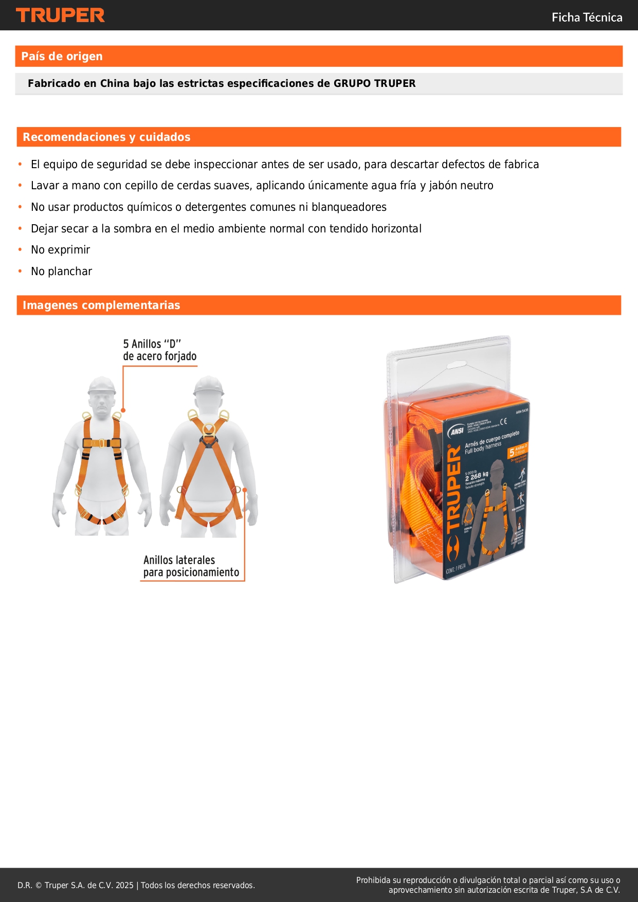 -5 Anillos “D” de acero forjado (2 en los hombros, 2 en la cintura y 1 en espalda)