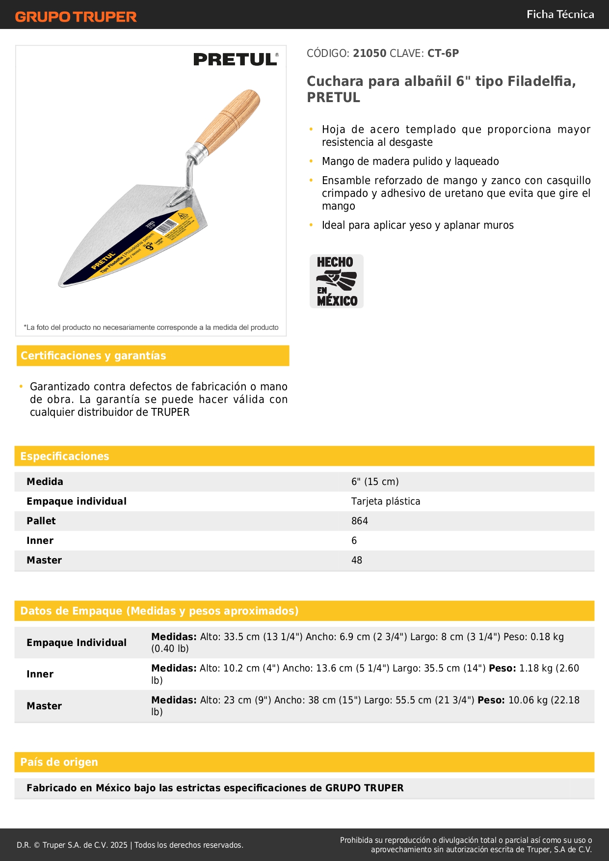Badilejo soldado de 6'' tipo filadelfia pretul