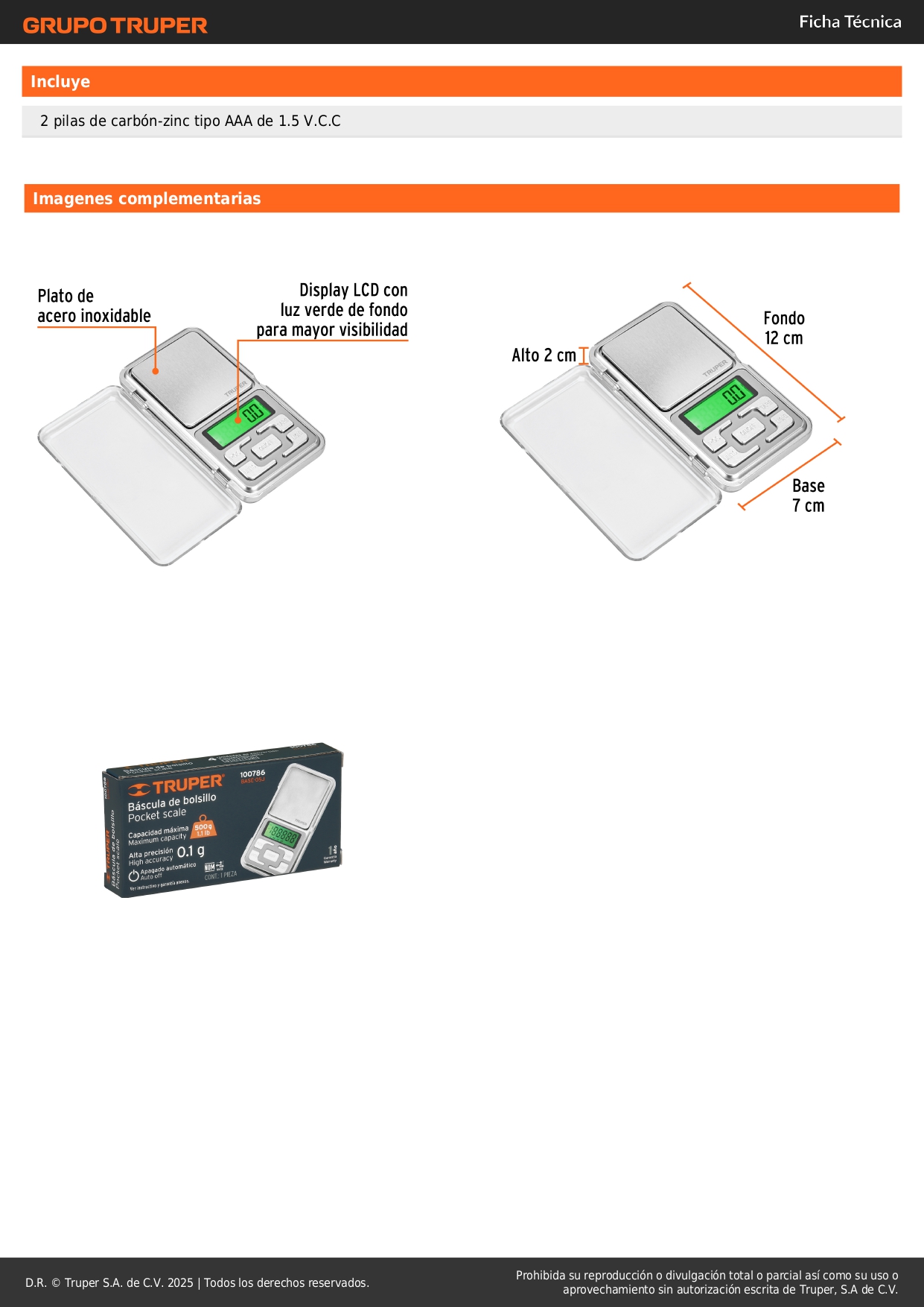 Dimensiones (Base x Altura x Fondo): 7 cm x 2 cm x 12 cm