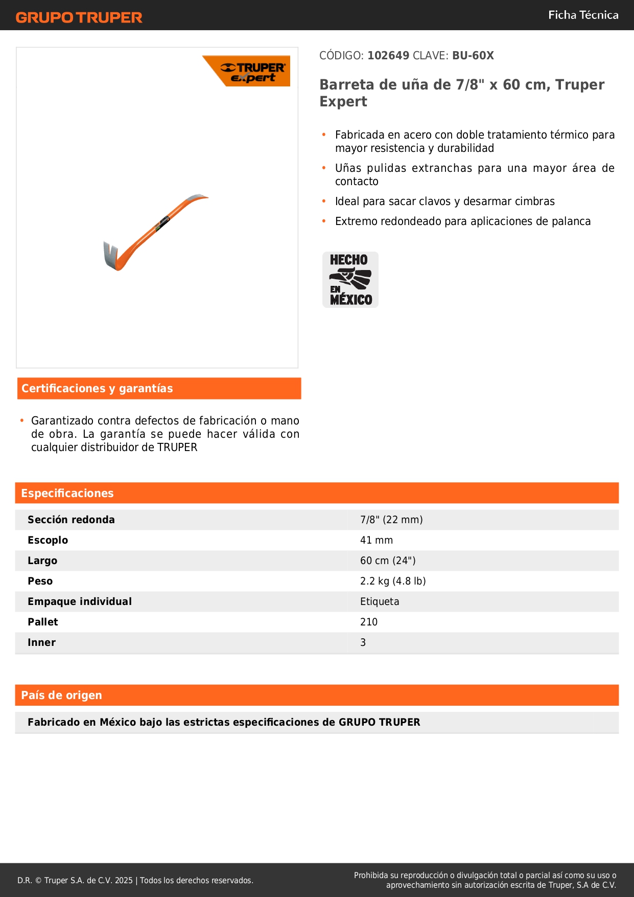 Barreta de uña de 7/8" x 60 cm, truper expert
