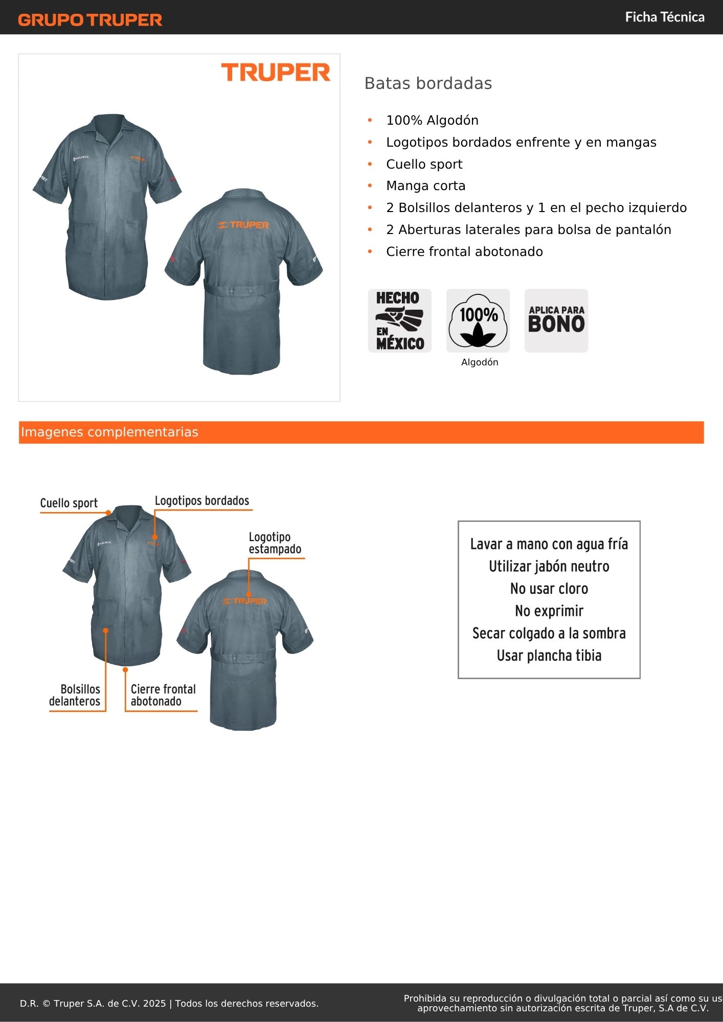 Bata bordada con logo, talla 42, truper S/ 65.30 TALLA 42 TALLA 44 Agregar al carro Avísame cuando llegue -100% Algodón-Logotipos bordados enfrente y en mangas-Cuello sport-Manga corta-2 Bolsillos delanteros y 1 en el pecho izquierdo