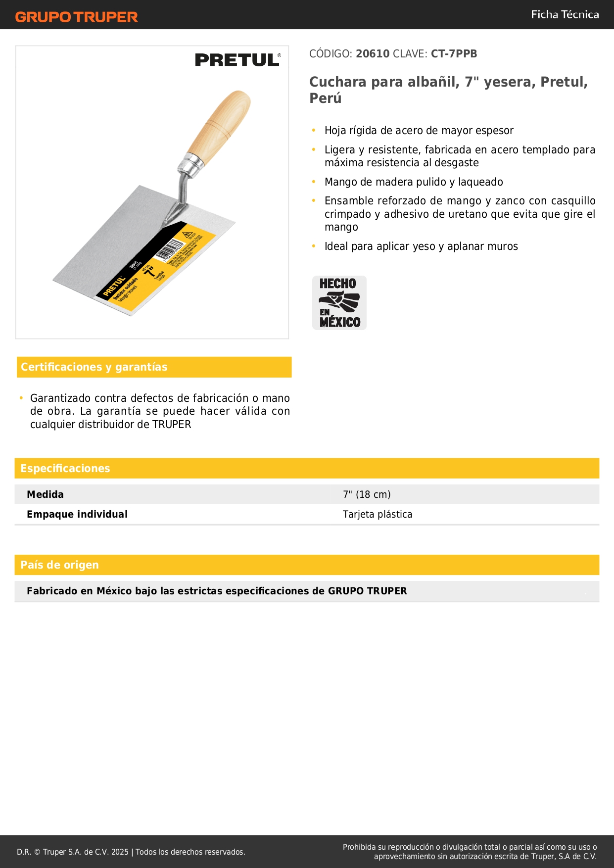 Ideal para aplicar yeso y aplanar muros.