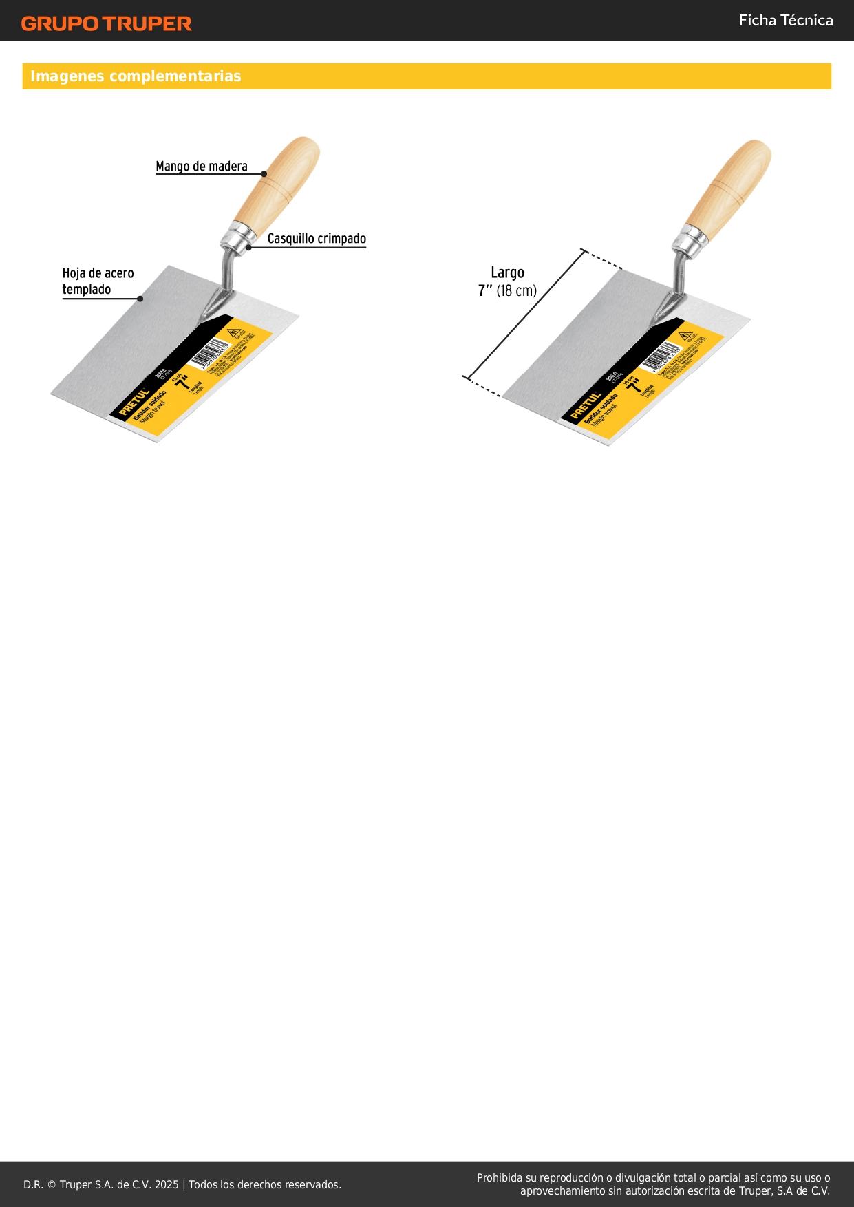 Ligera y resistente, fabricada en acero templado para máxima resistencia al desgaste.