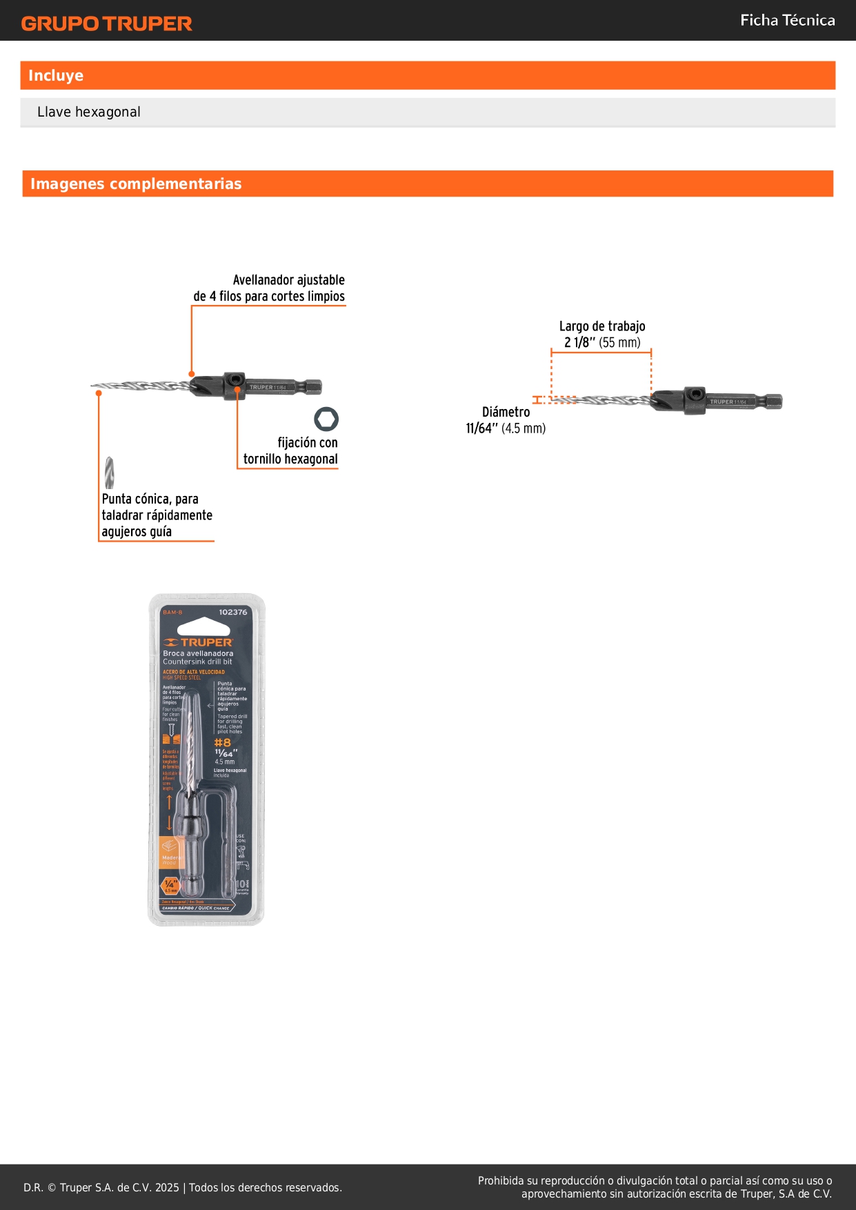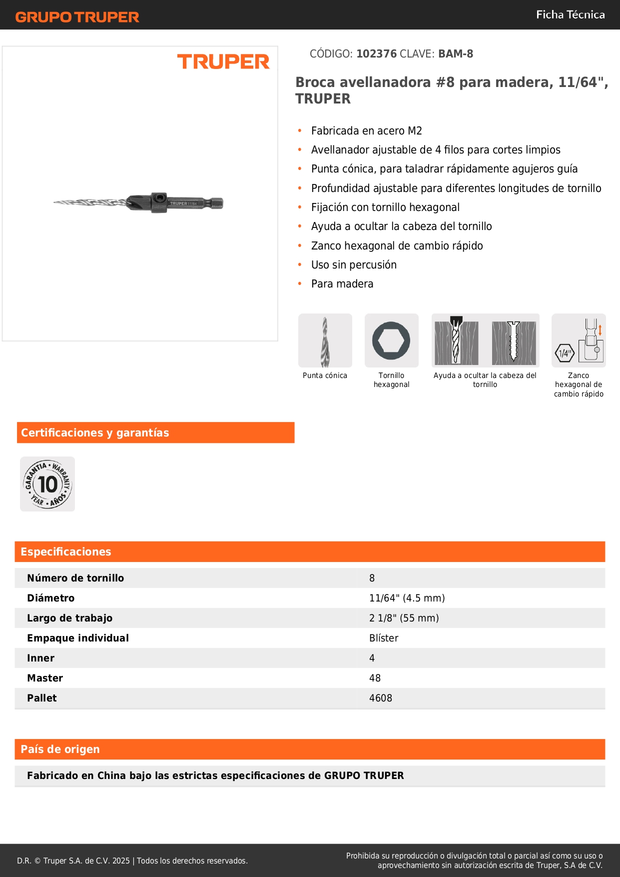 Broca avellanadora para madera 11/64 truper