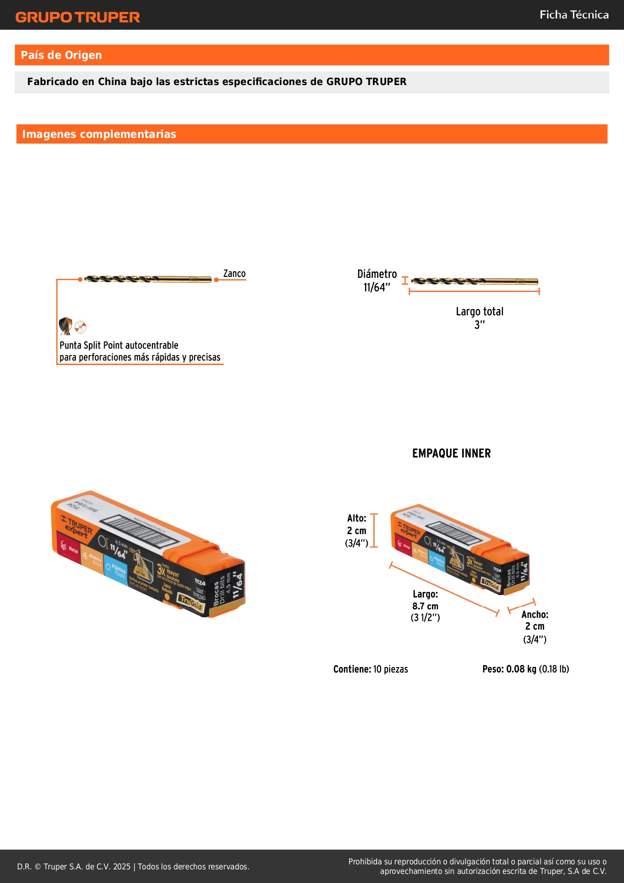 Broca hss 11/64' trugold para metal, truper expert por unidad