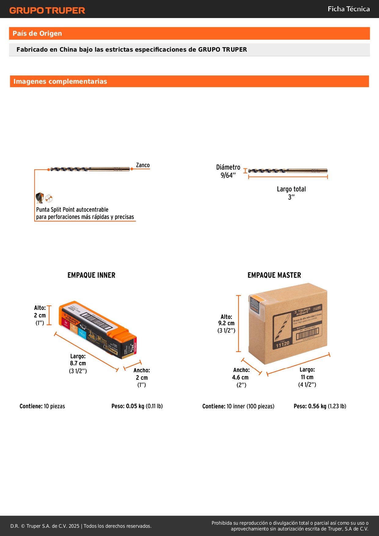 -Fabricada en acero M2, 3X mayor vida útil que las brocas de óxido negro