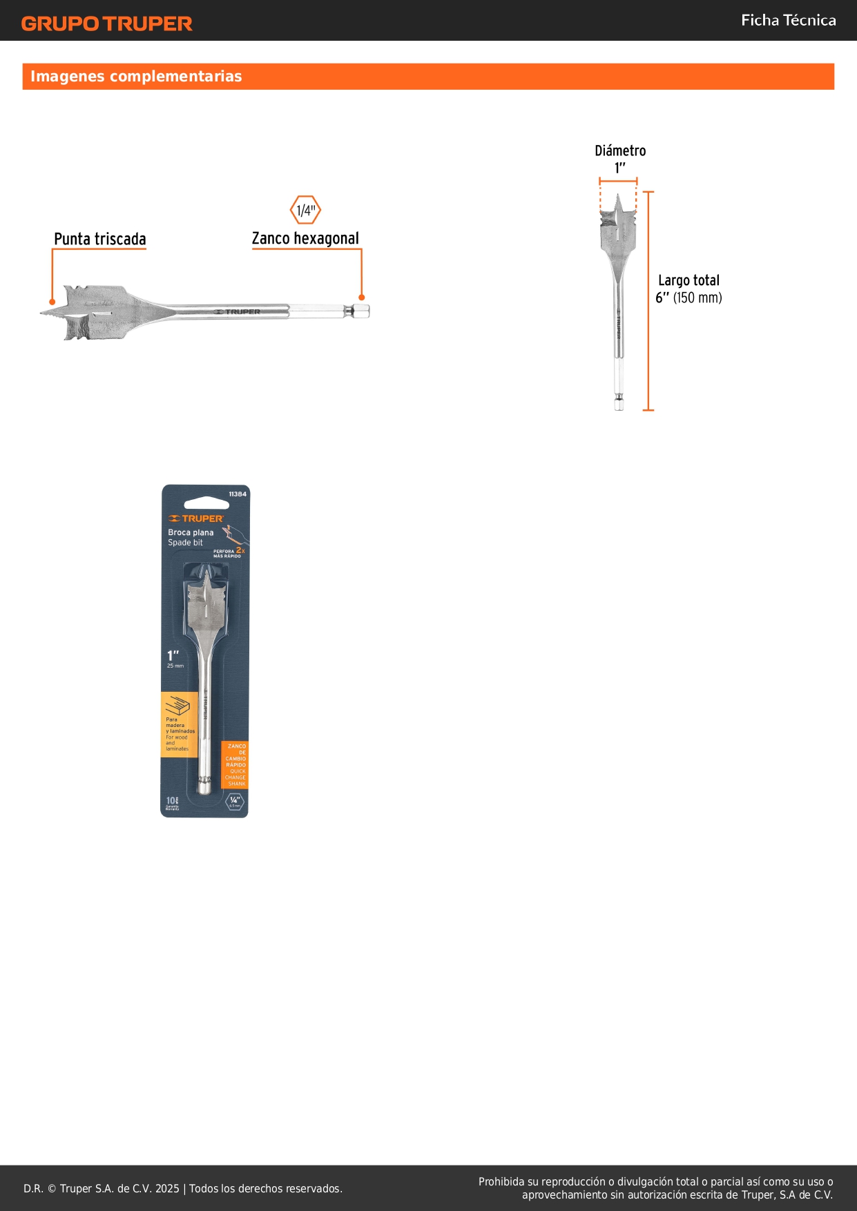 Broca paleta 1'' para madera truper