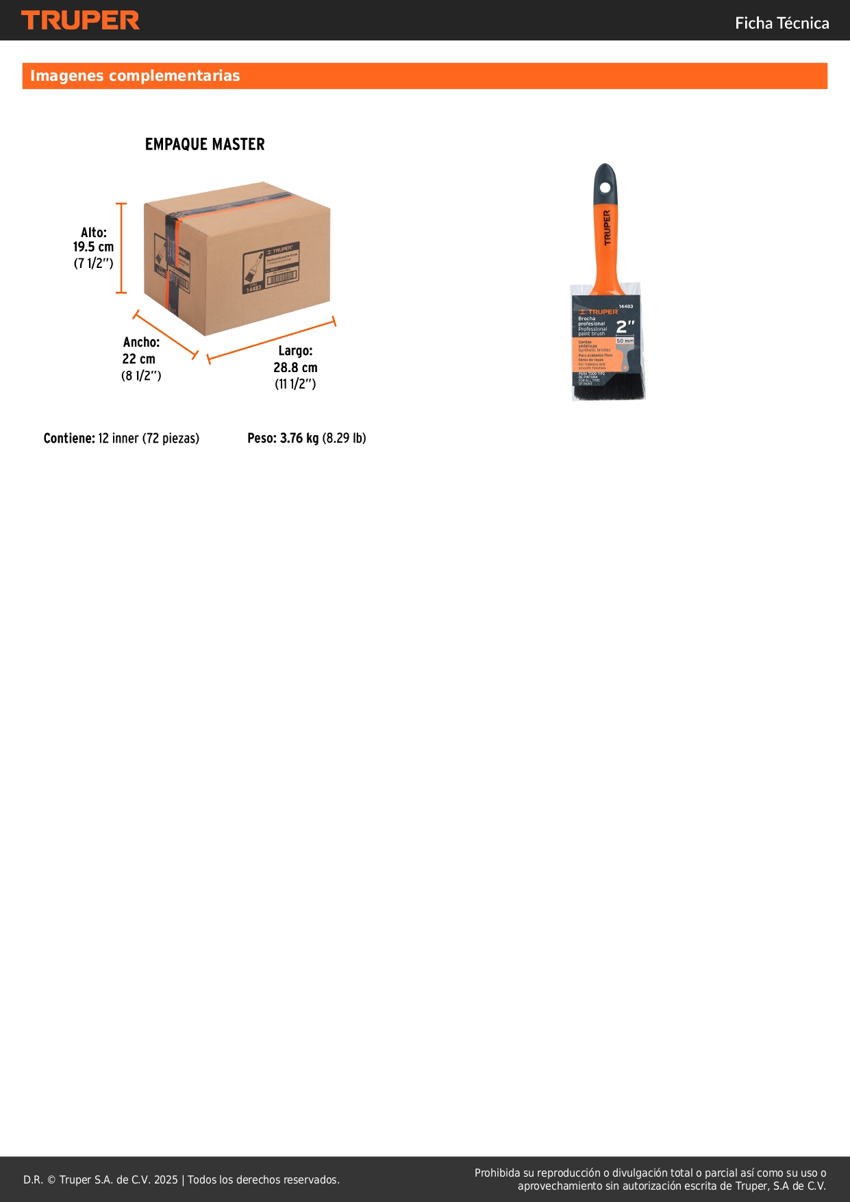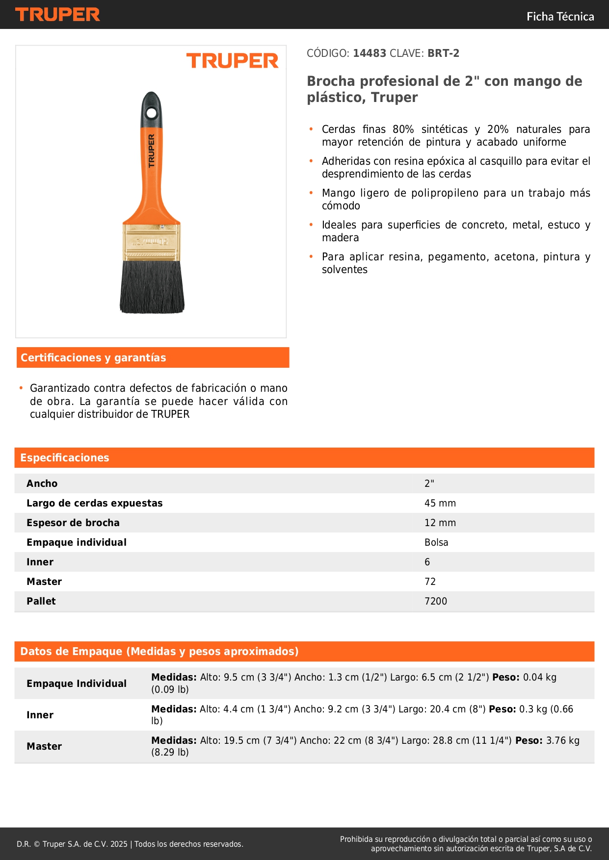 Brocha profesional de 2'' con mango de plástico truper