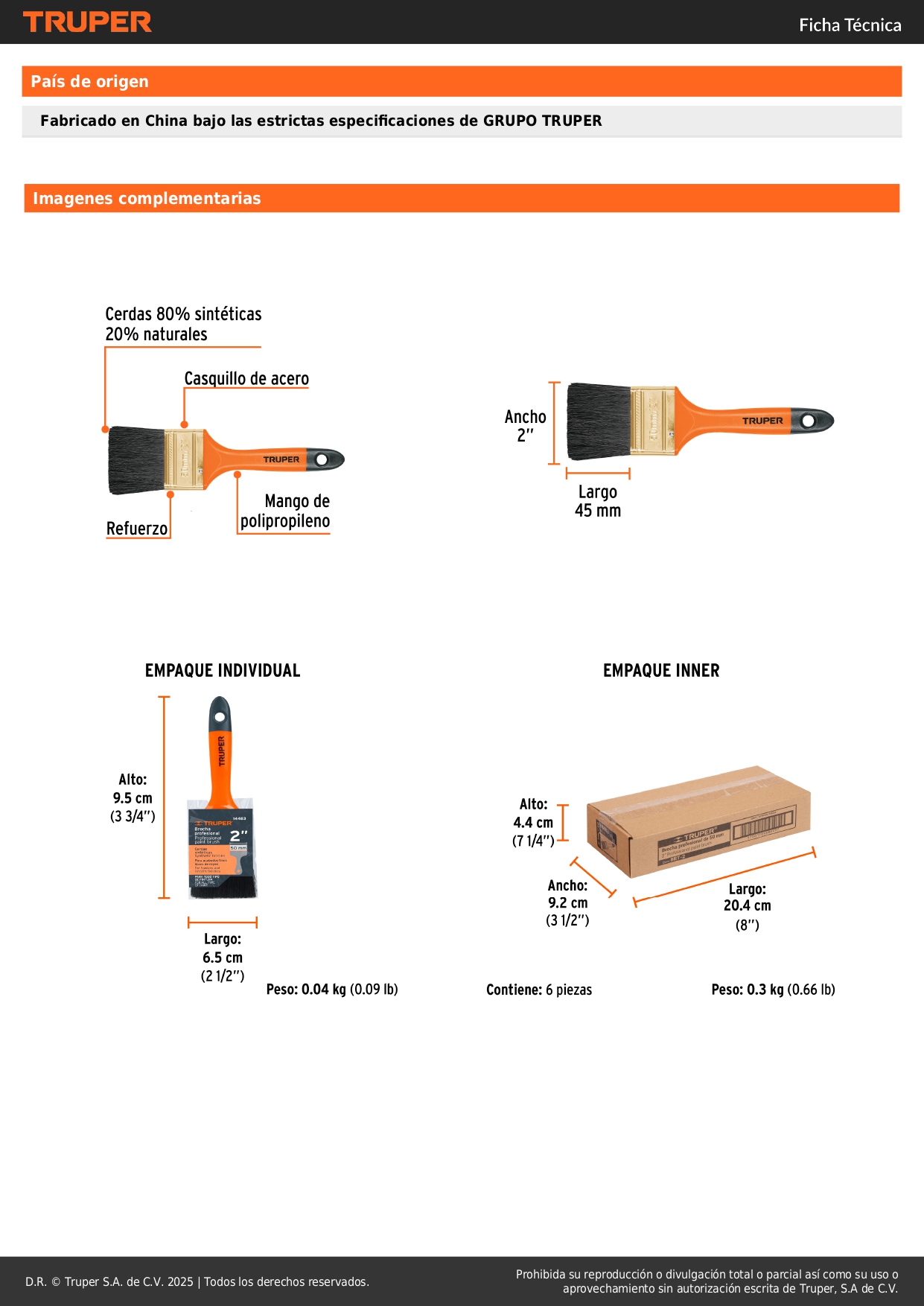 -Cerdas finas 80% sintéticas y 20% naturales para mayor retención de pintura y acabado uniforme