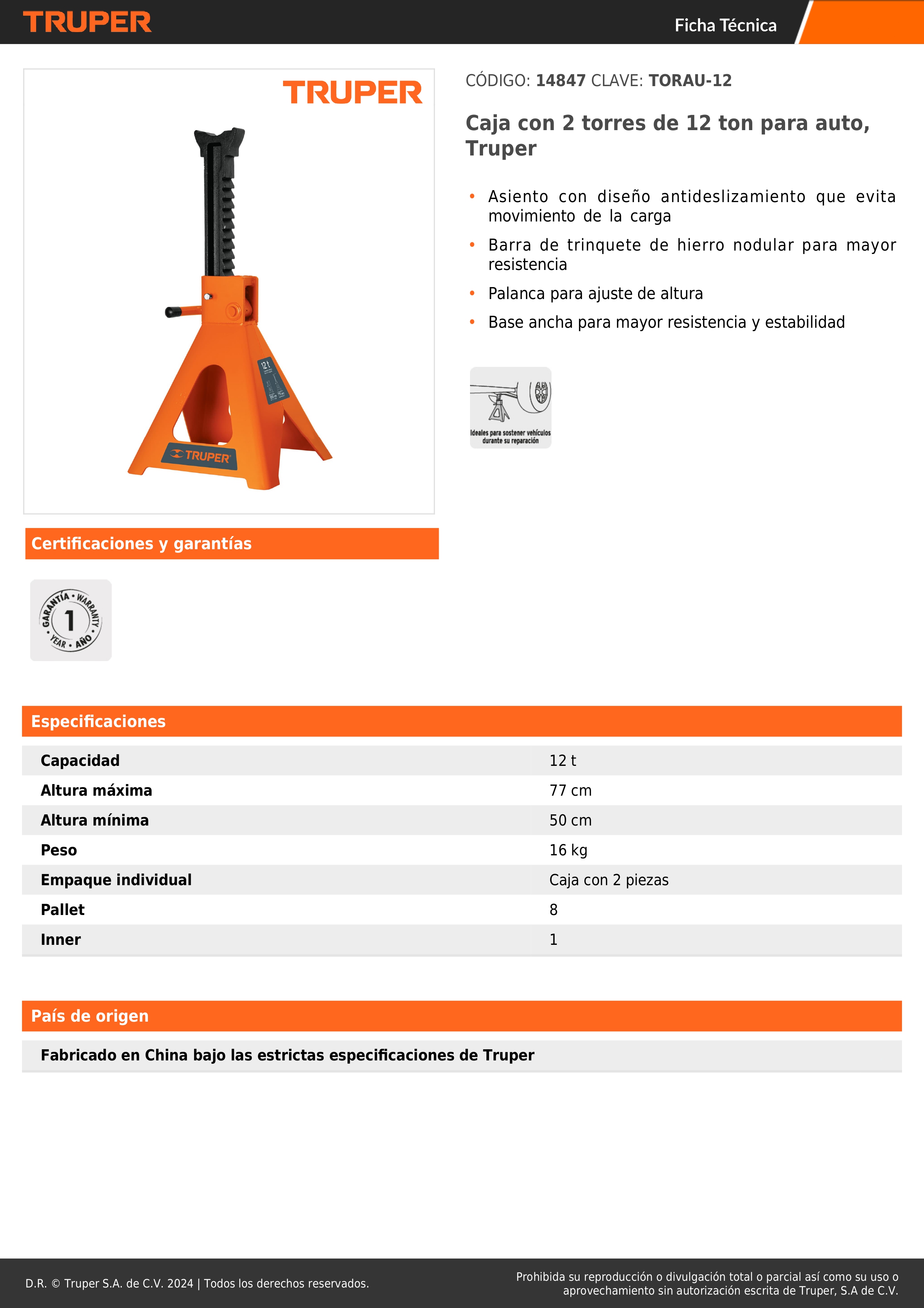 Caballete de 12 toneladas 2 piezas torre para auto truper