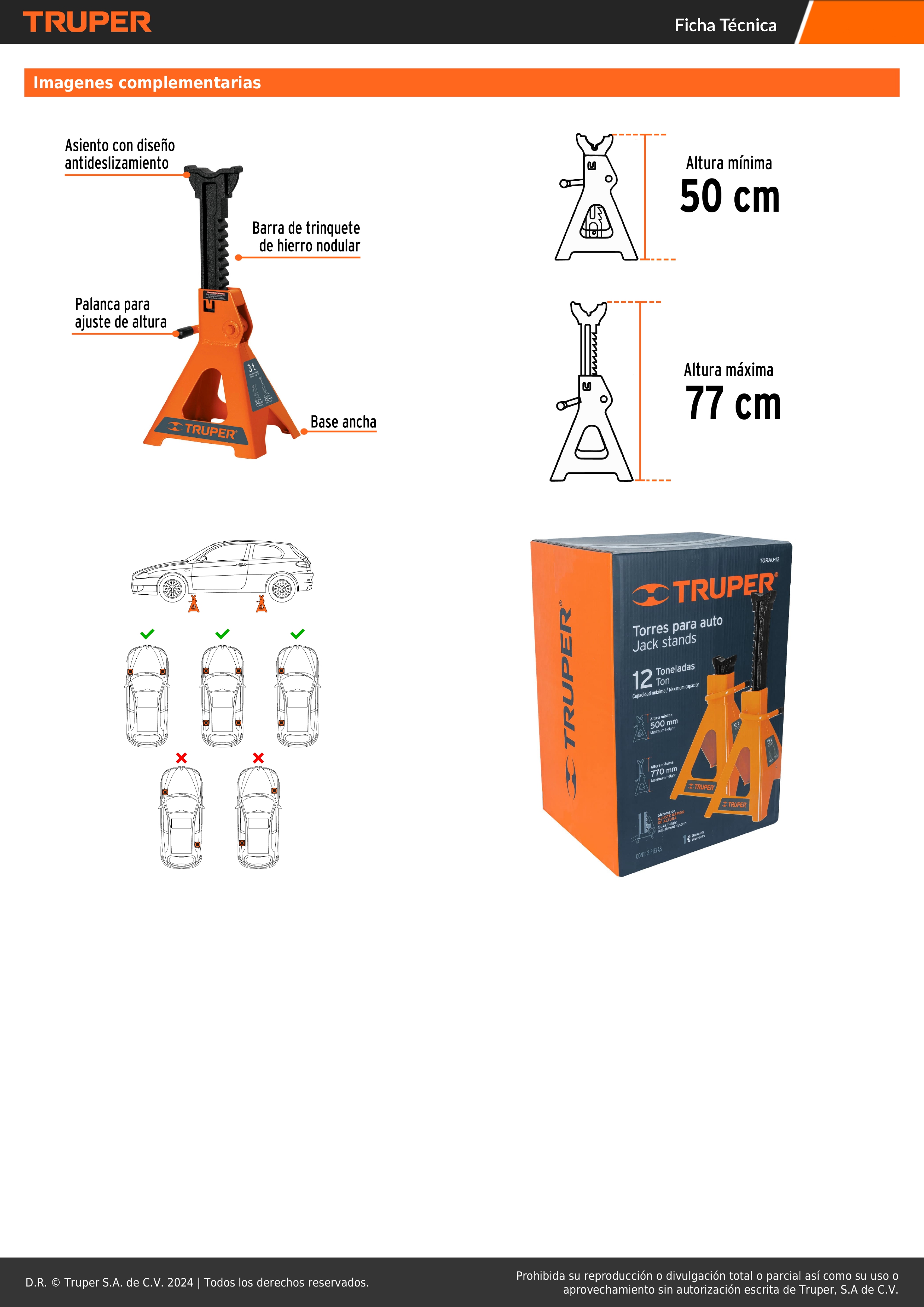 - Asiento con diseño antideslizamiento que evita movimiento de la carga