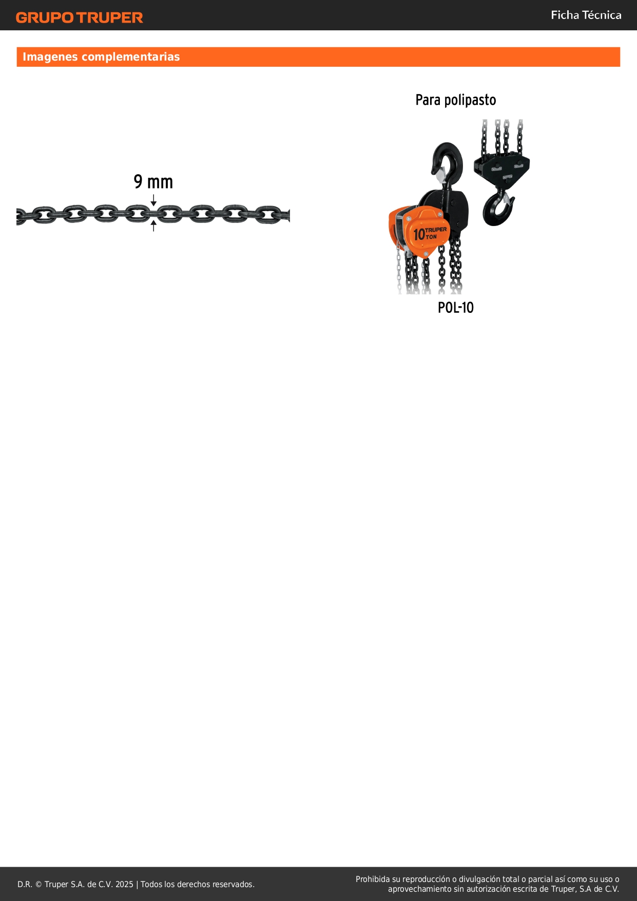 • Para polipasto modelo POL-10 marca Truper®