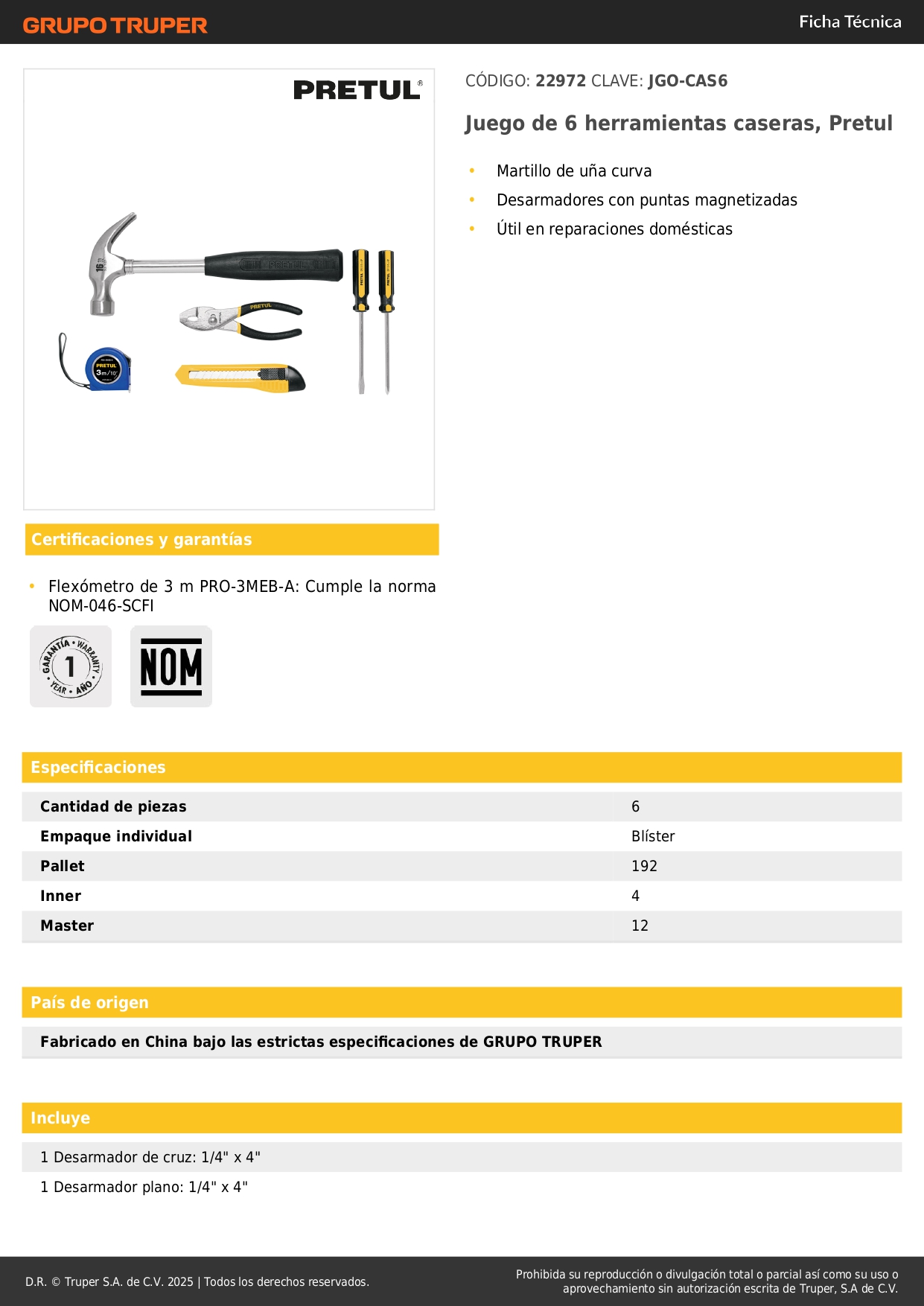 - 1 Martillo uña curva: 16 oz