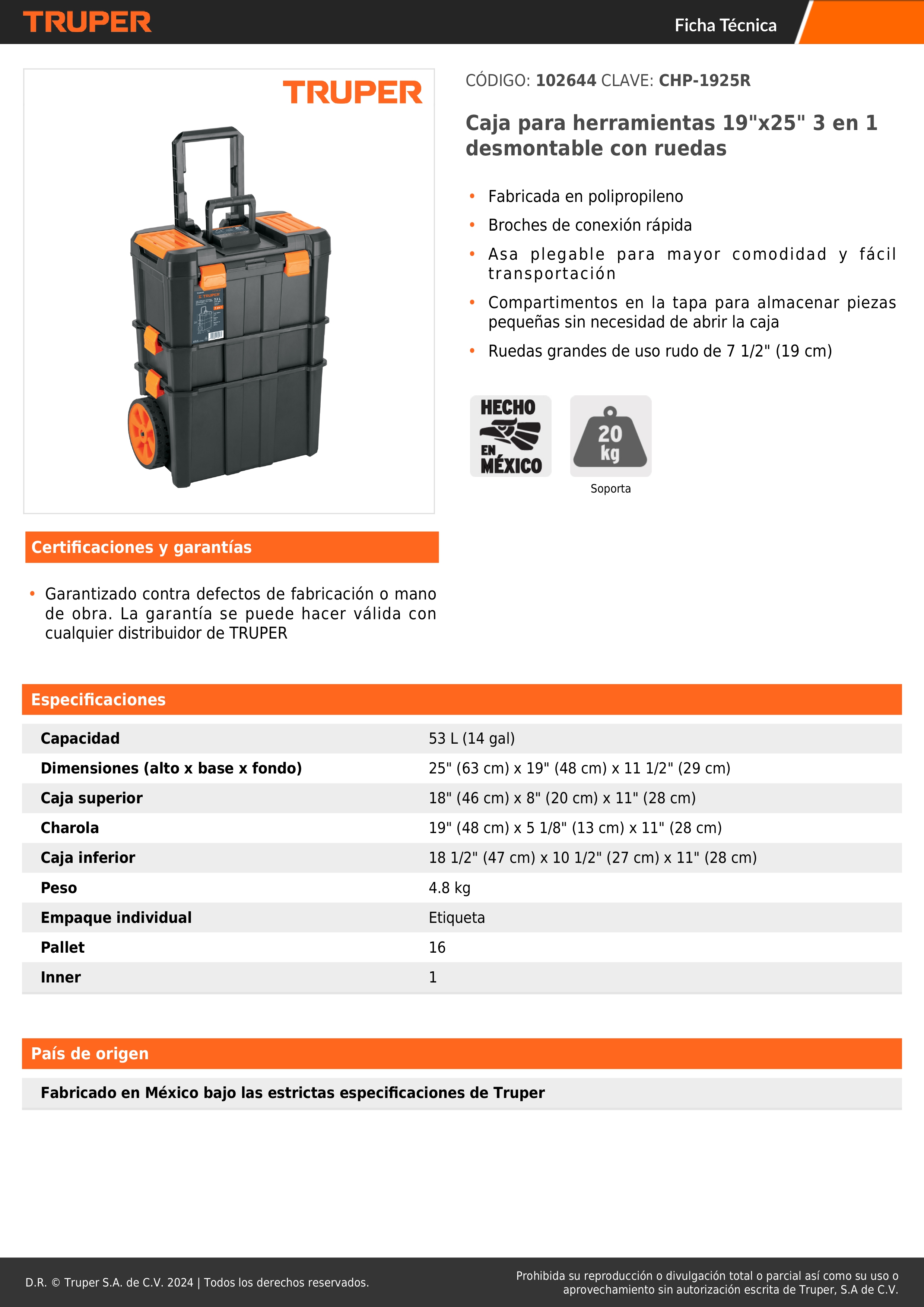 Caja para herramientas 19"x25" 3 en 1 desmontable con ruedas