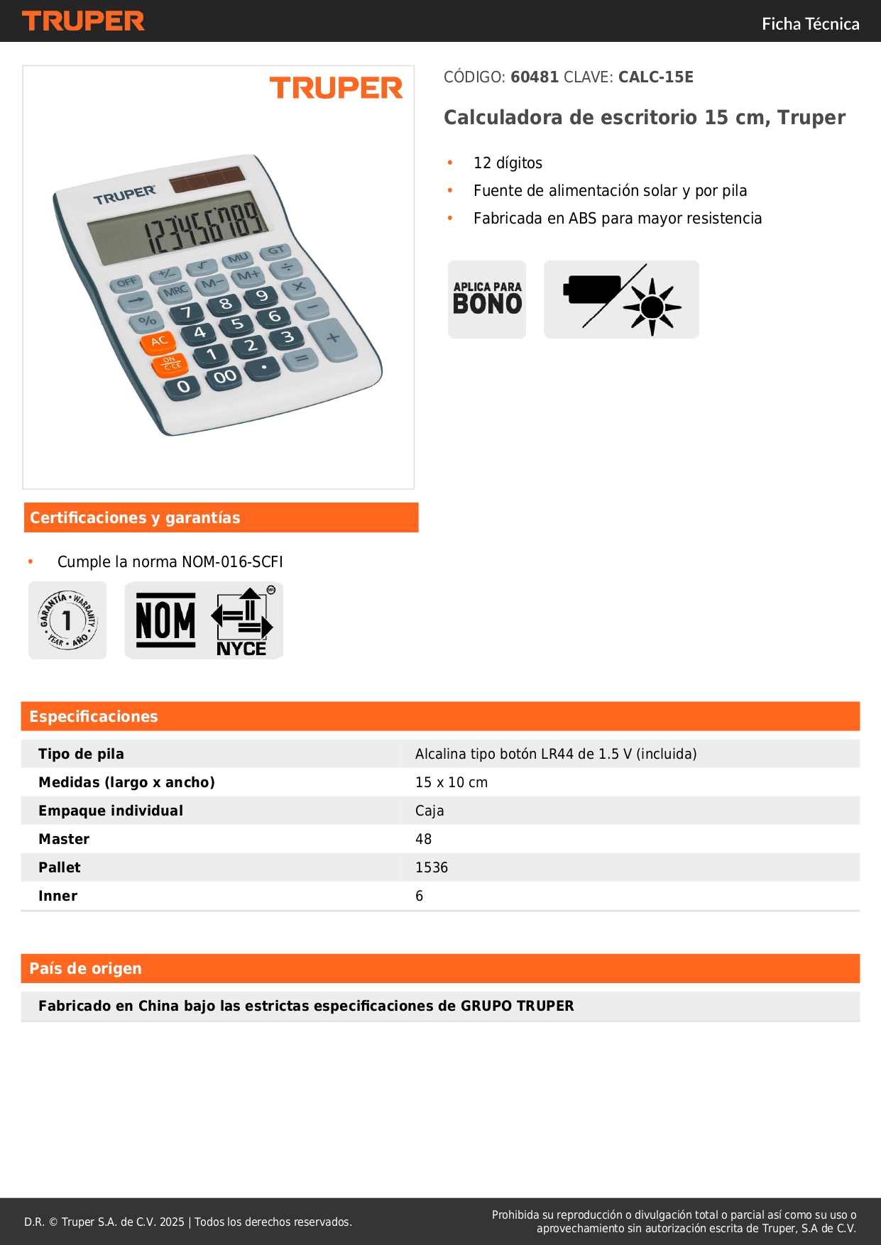 Tipo de pila Alcalina tipo botón LR44 de 1.5 V (incluida)