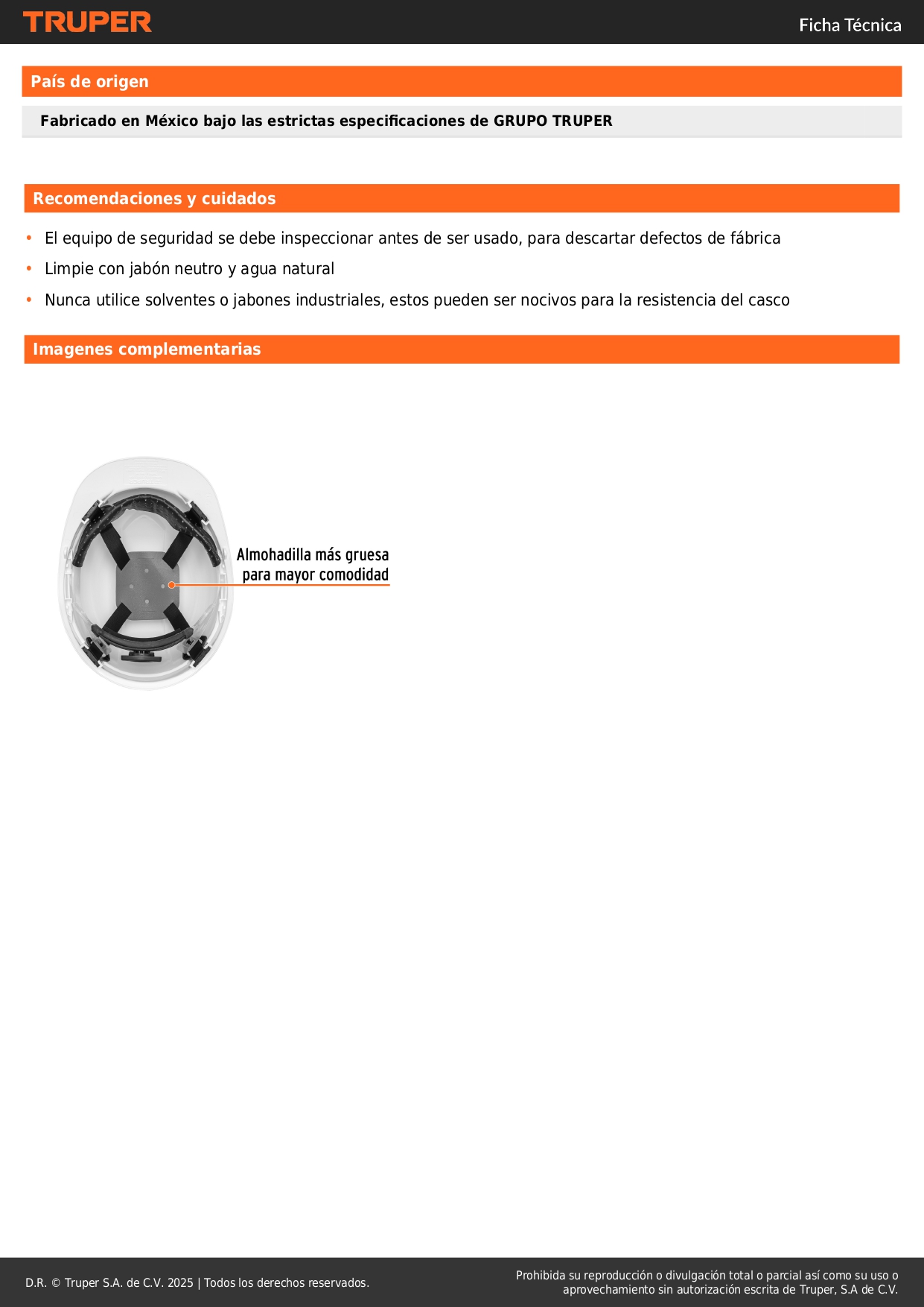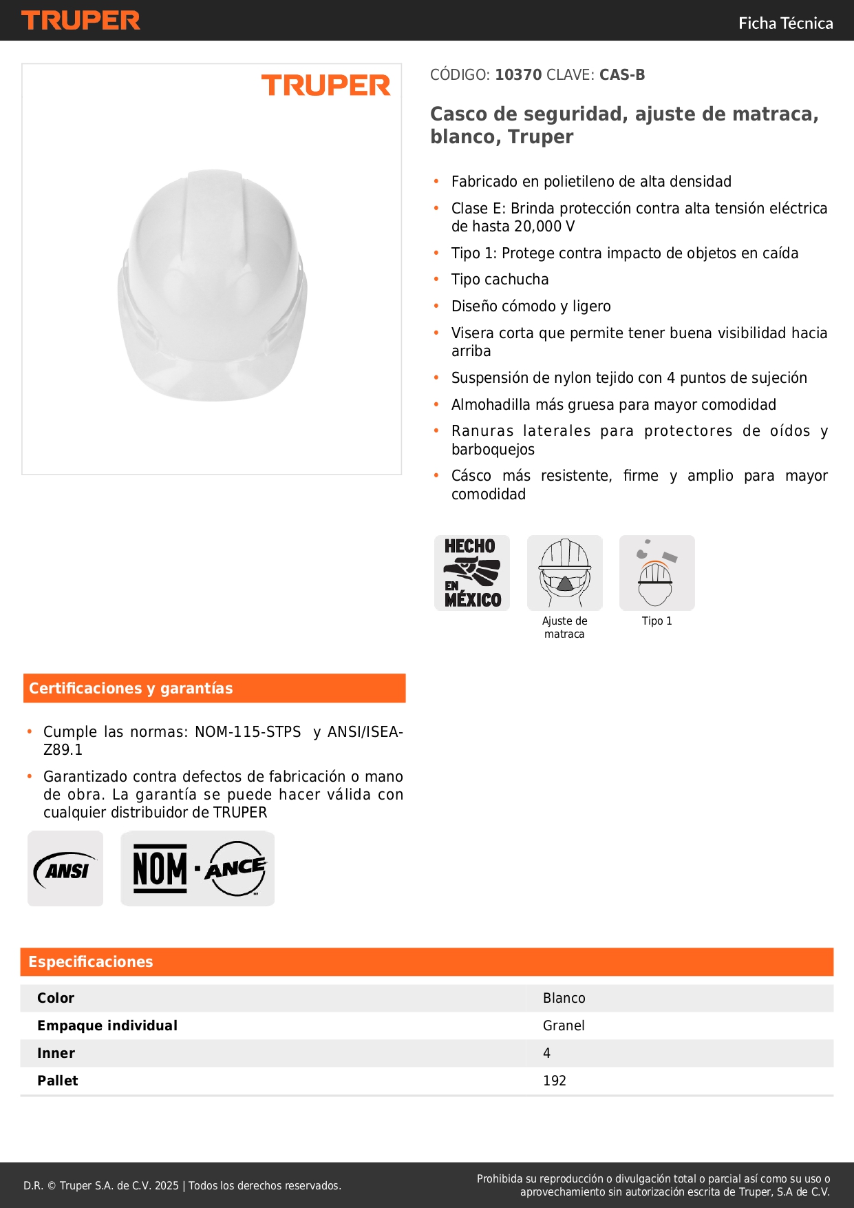 Casco de seguridad. ajuste de ratchet. blanco. truper