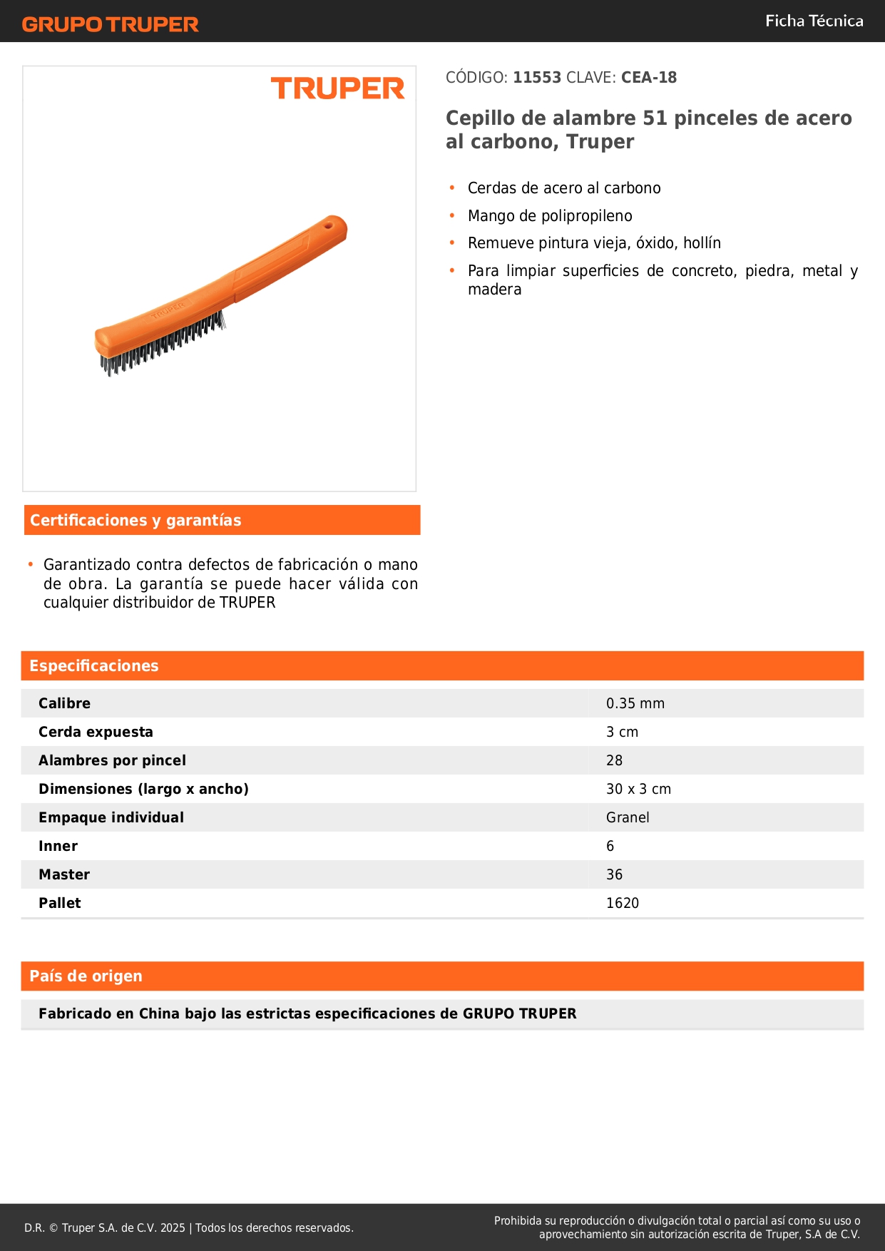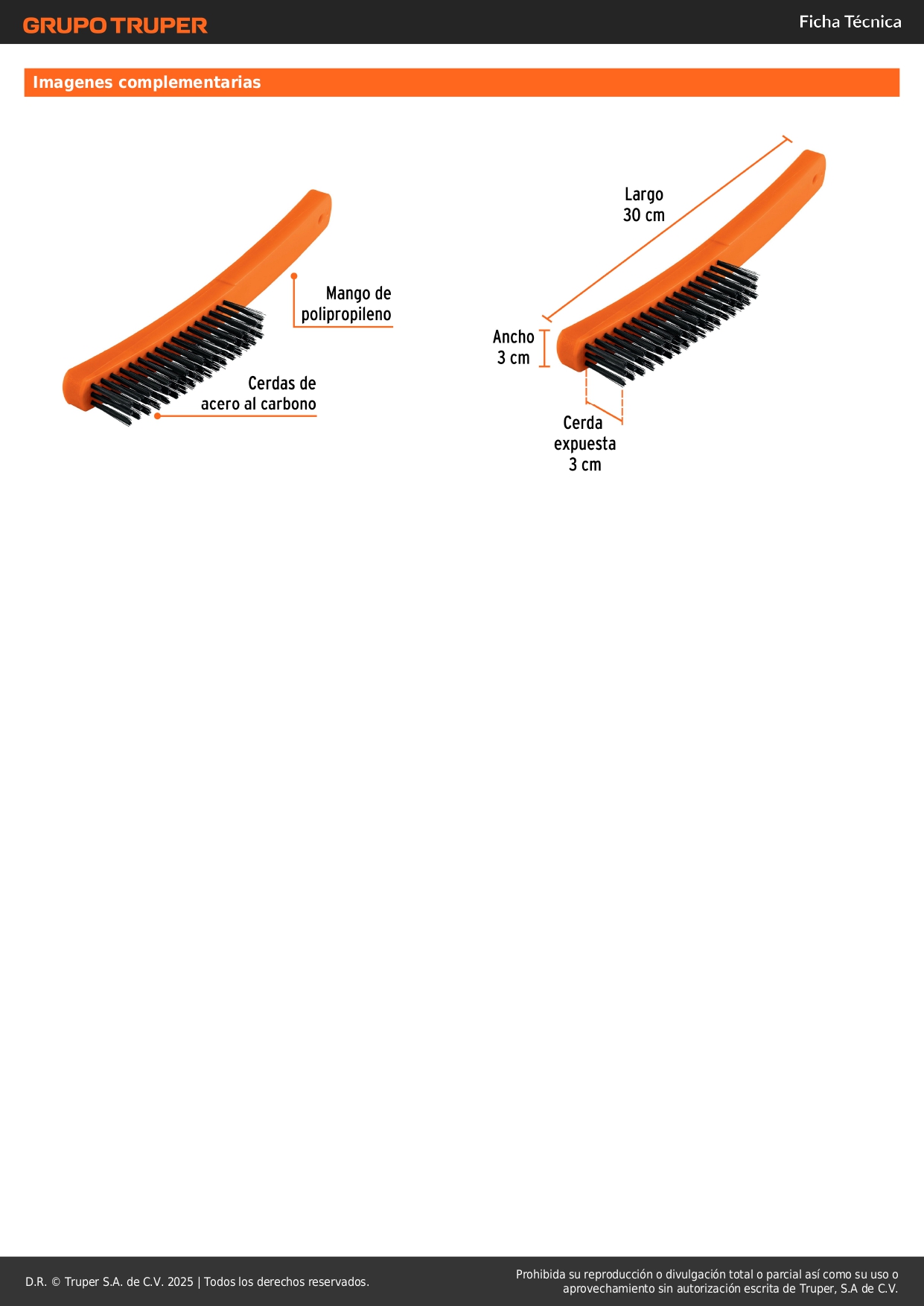Cepillo de alambre 51 pinceles de acero al carbono. truper