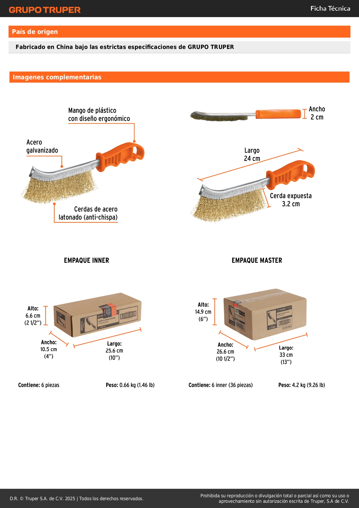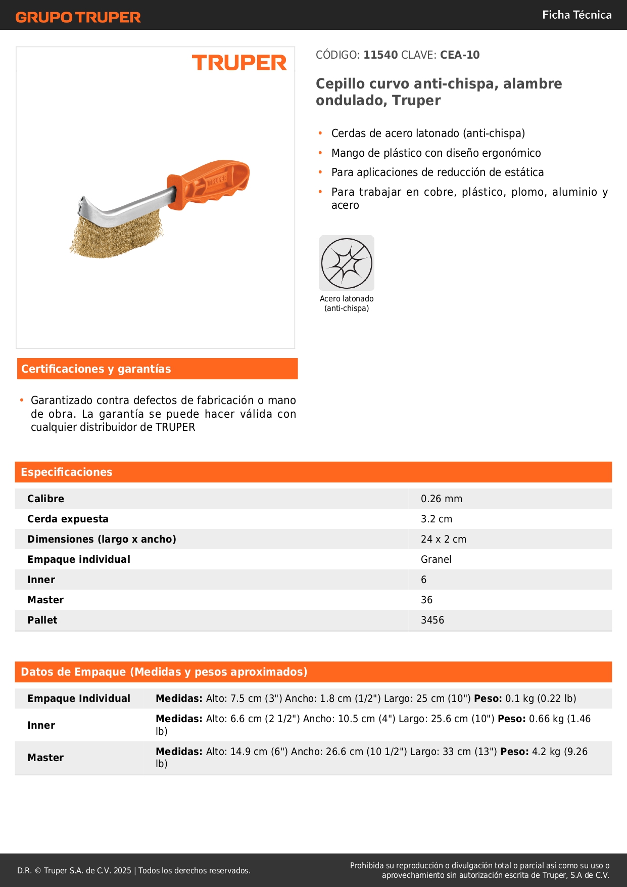Cerdas de acero latonado (anti-chispa).