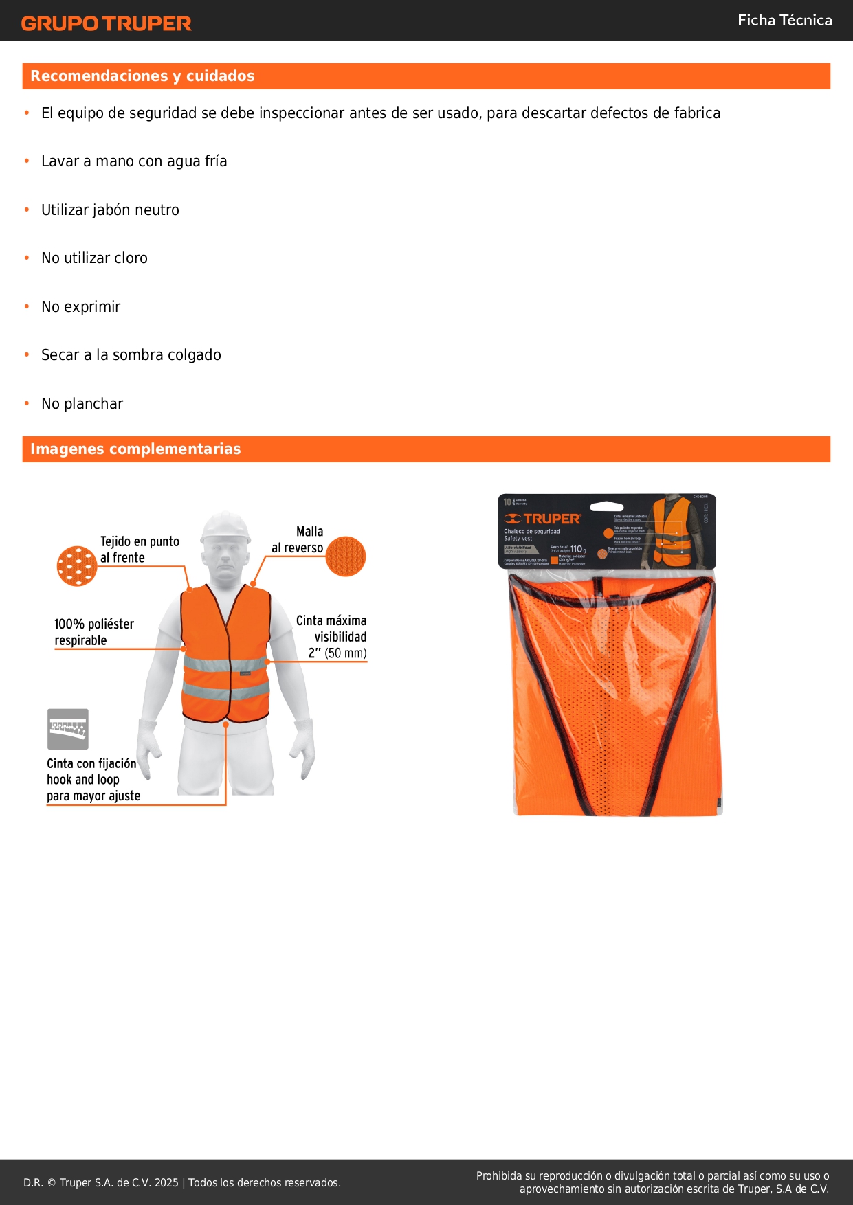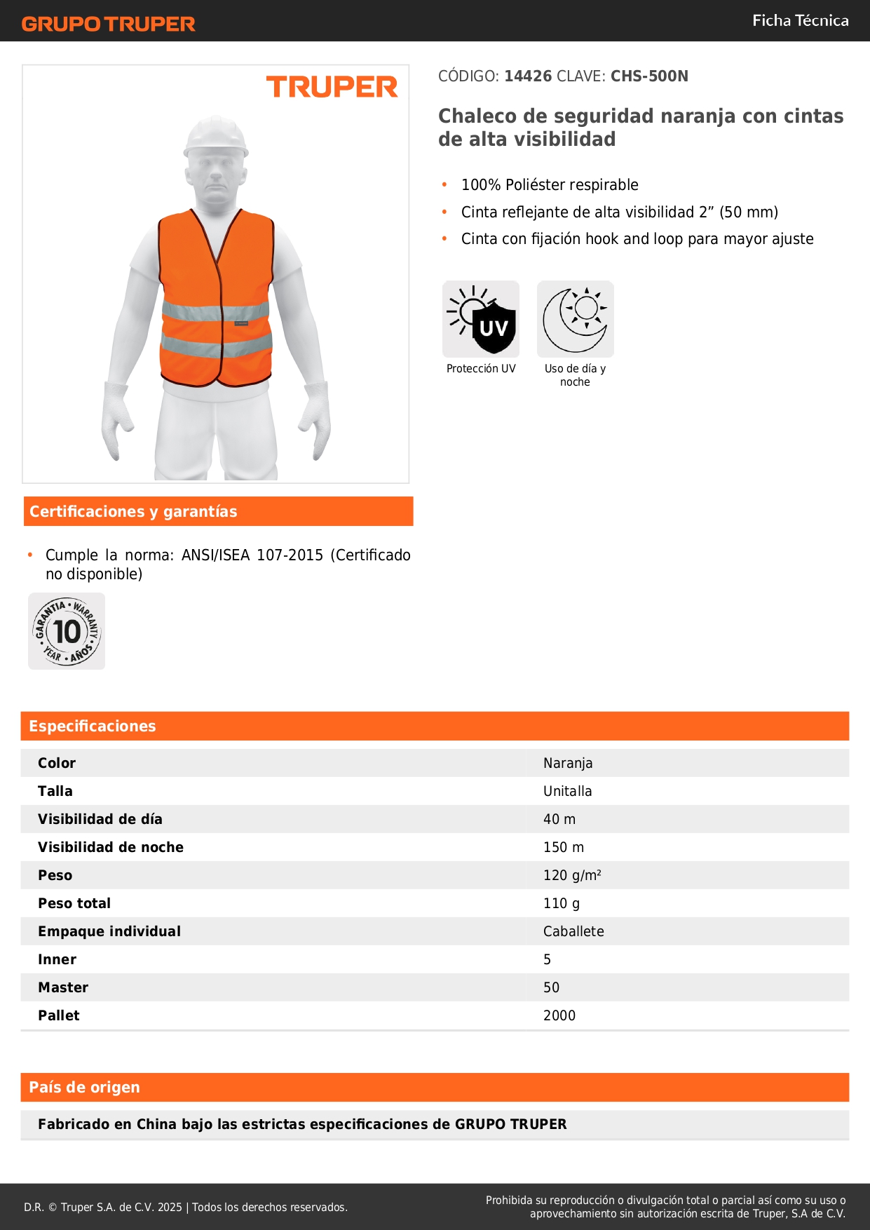 Chaleco de seguridad naranja con cintas de alta visibilidad truper