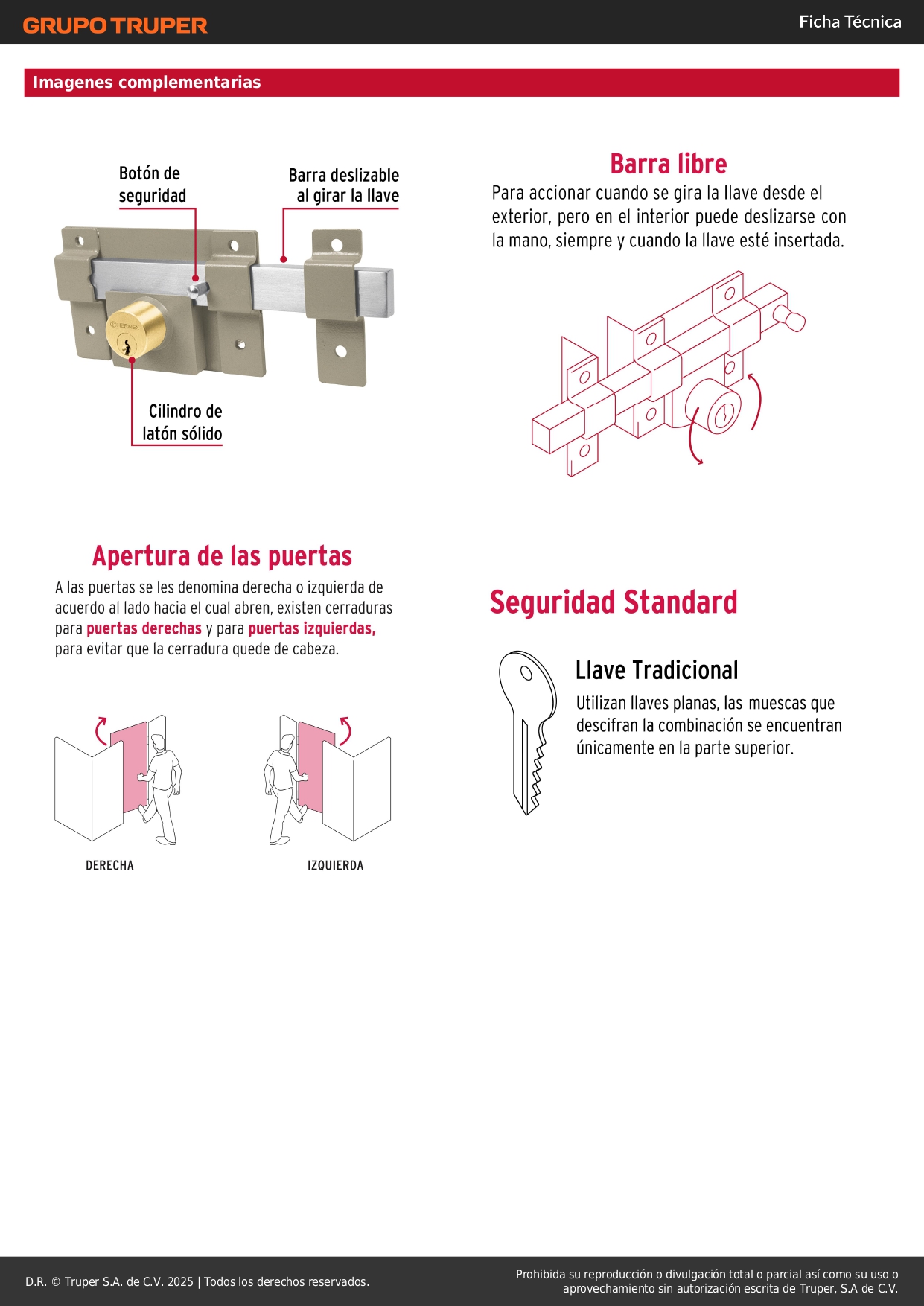 • Cerradura de barra libre, se acciona cuando se gira la llave desde el exterior, pero en el interior puede