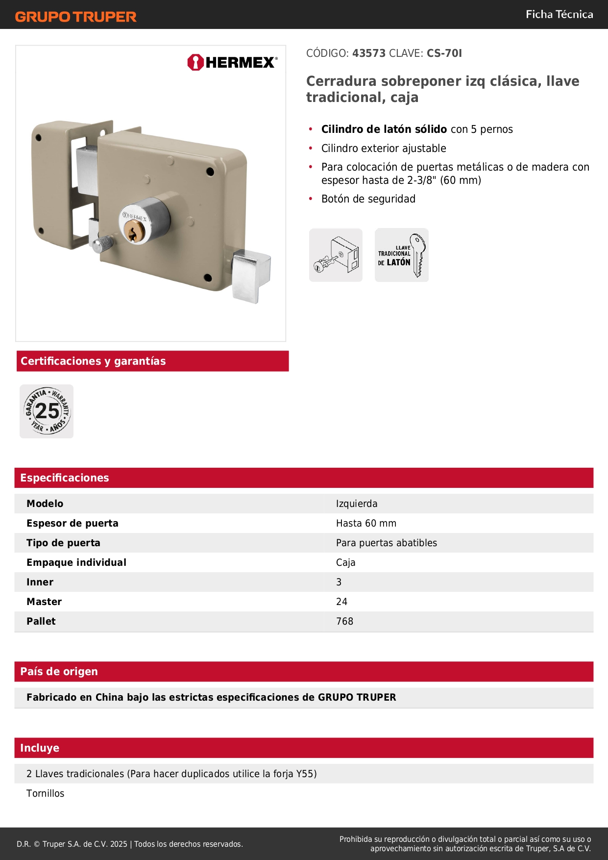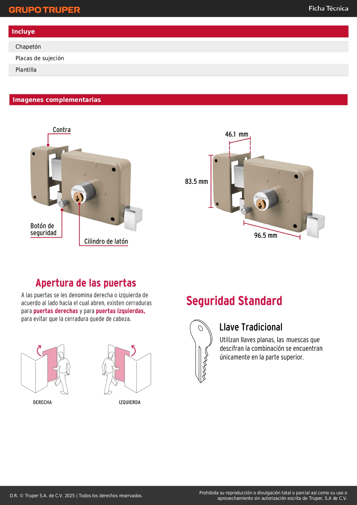 Chapa cerradura de sobreponer izquierda clasica hermex
