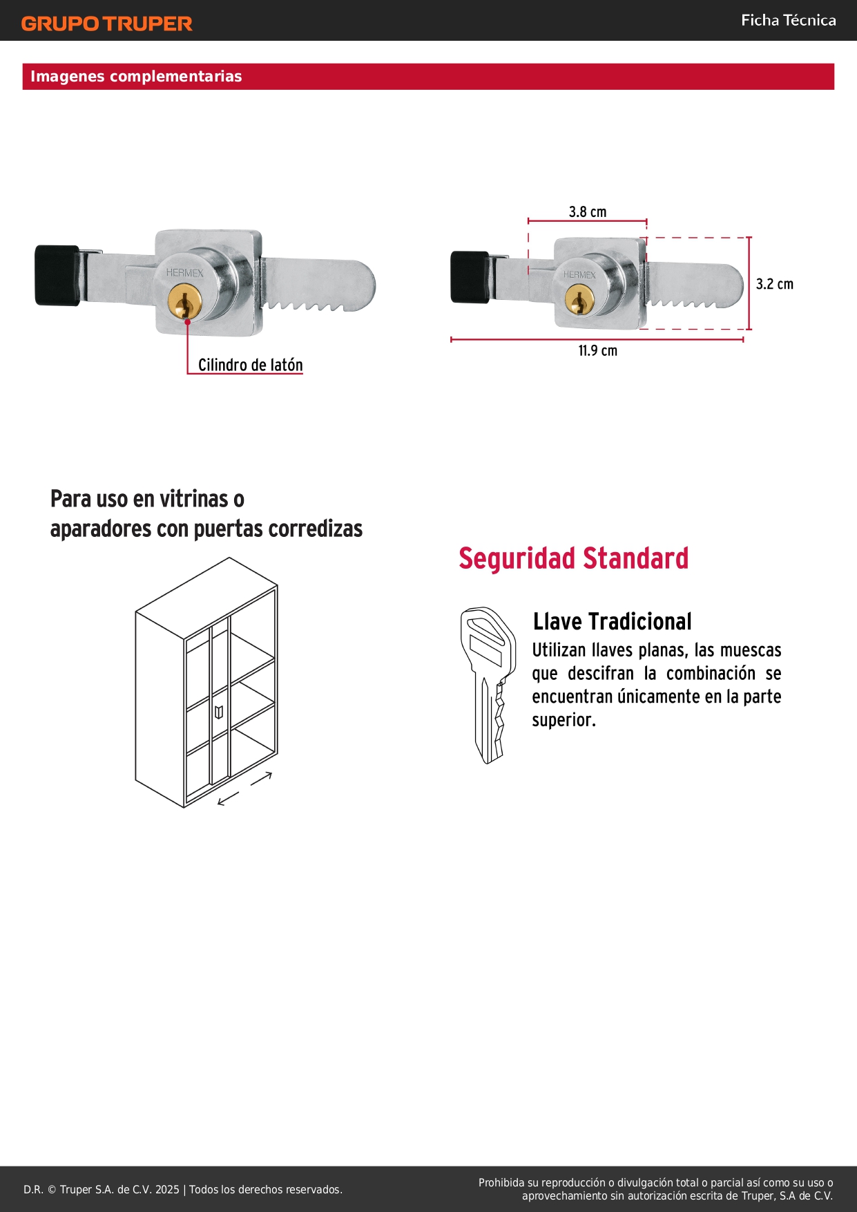 • Cilindro de latón sólido con sistema de pernos para mayor seguridad