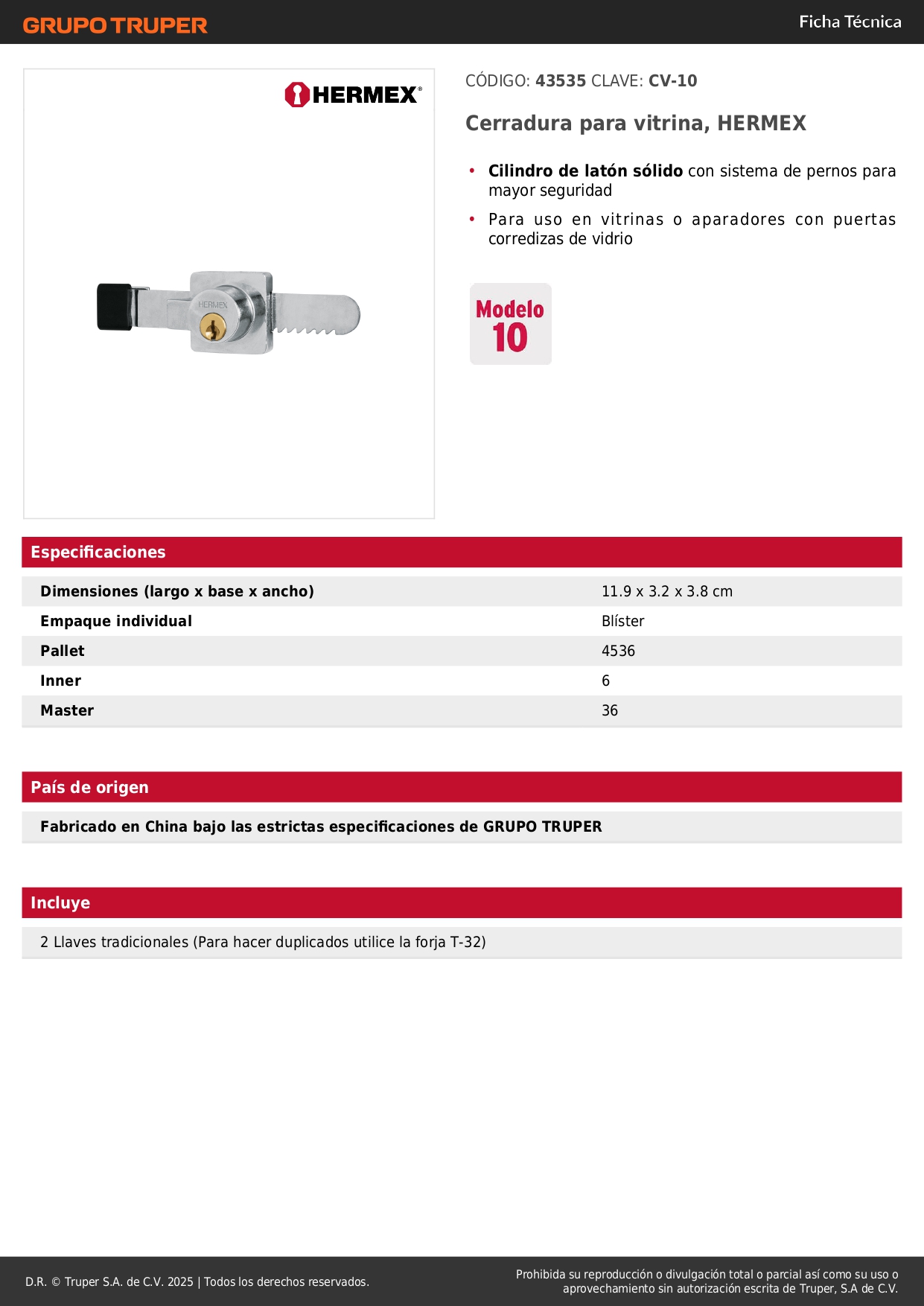 2 Llaves tradicionales (Para hacer duplicados utilice la forja T-32)