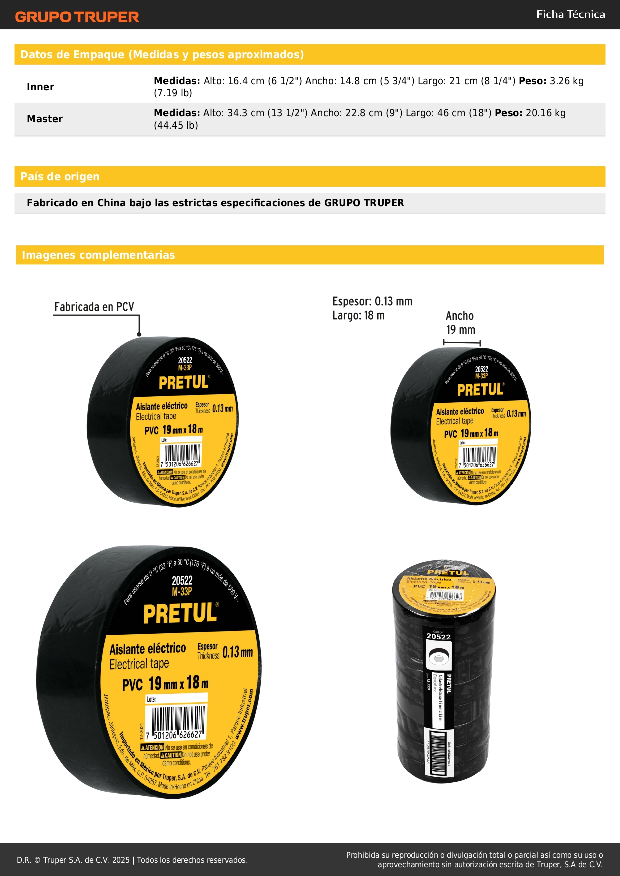 Cinta aislante de 18 m x 19 mm, negra, pretul S/ 2.90 Agregar al carro Avísame cuando llegue -Cinta de PVC-Base de adhesivo hule - resina para mayor adherencia en temperaturas frías y de calor (0 °C a 80 °C)-Retardante de flama y excelente flexibilidad