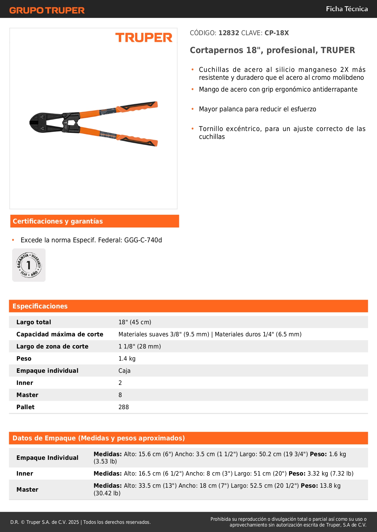 Cizalla profesional de 18''. truper