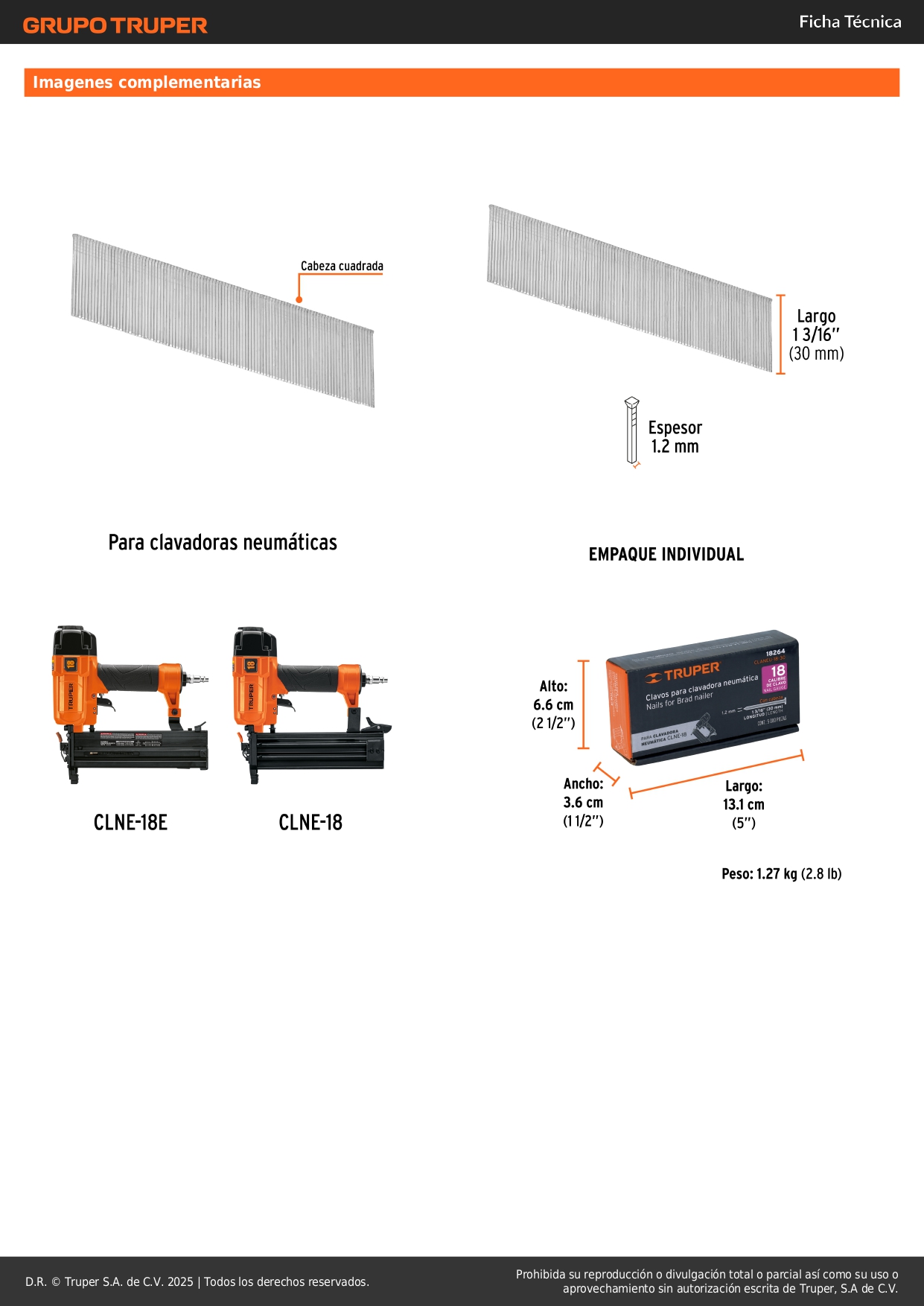 Largo de clavo 1 3/16" (30 mm)