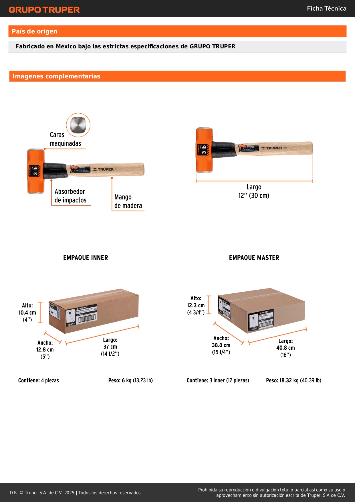 El cabezal tiene un peso de 3 libras, lo que proporciona la masa necesaria para generar fuerza al golpear.