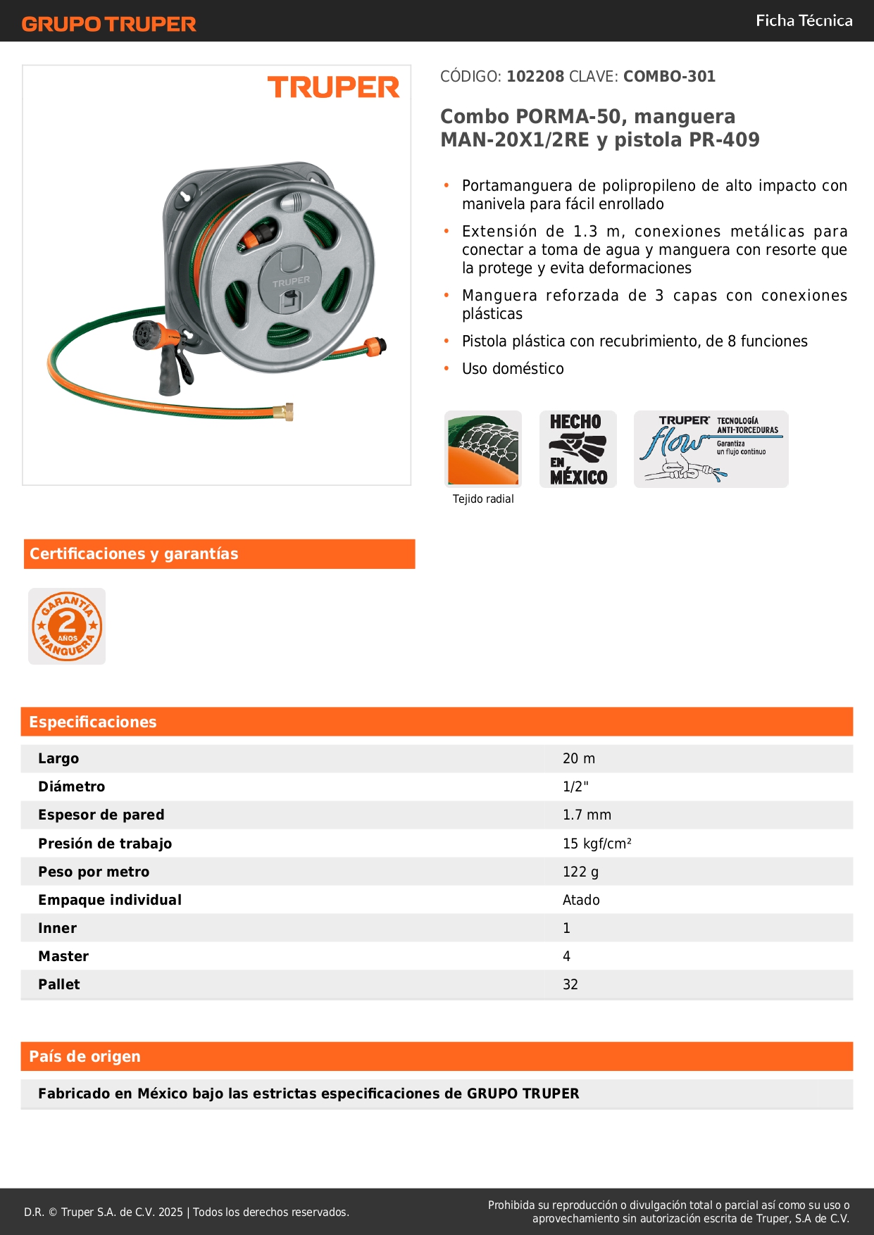 Combo PORMA-50, manguera MAN-20X1/2RE y pistola PR-409