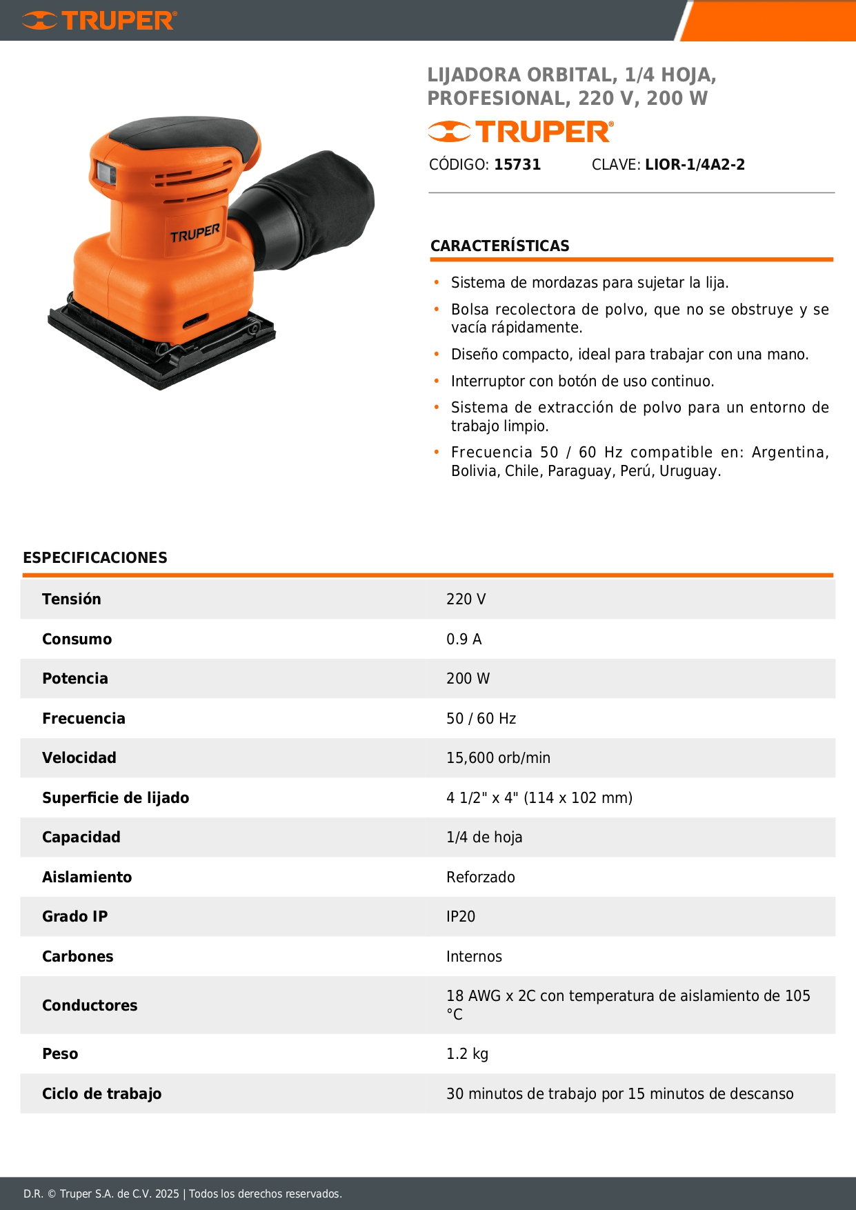 LIJADORA ORBITAL, PROFESIONAL 200 W