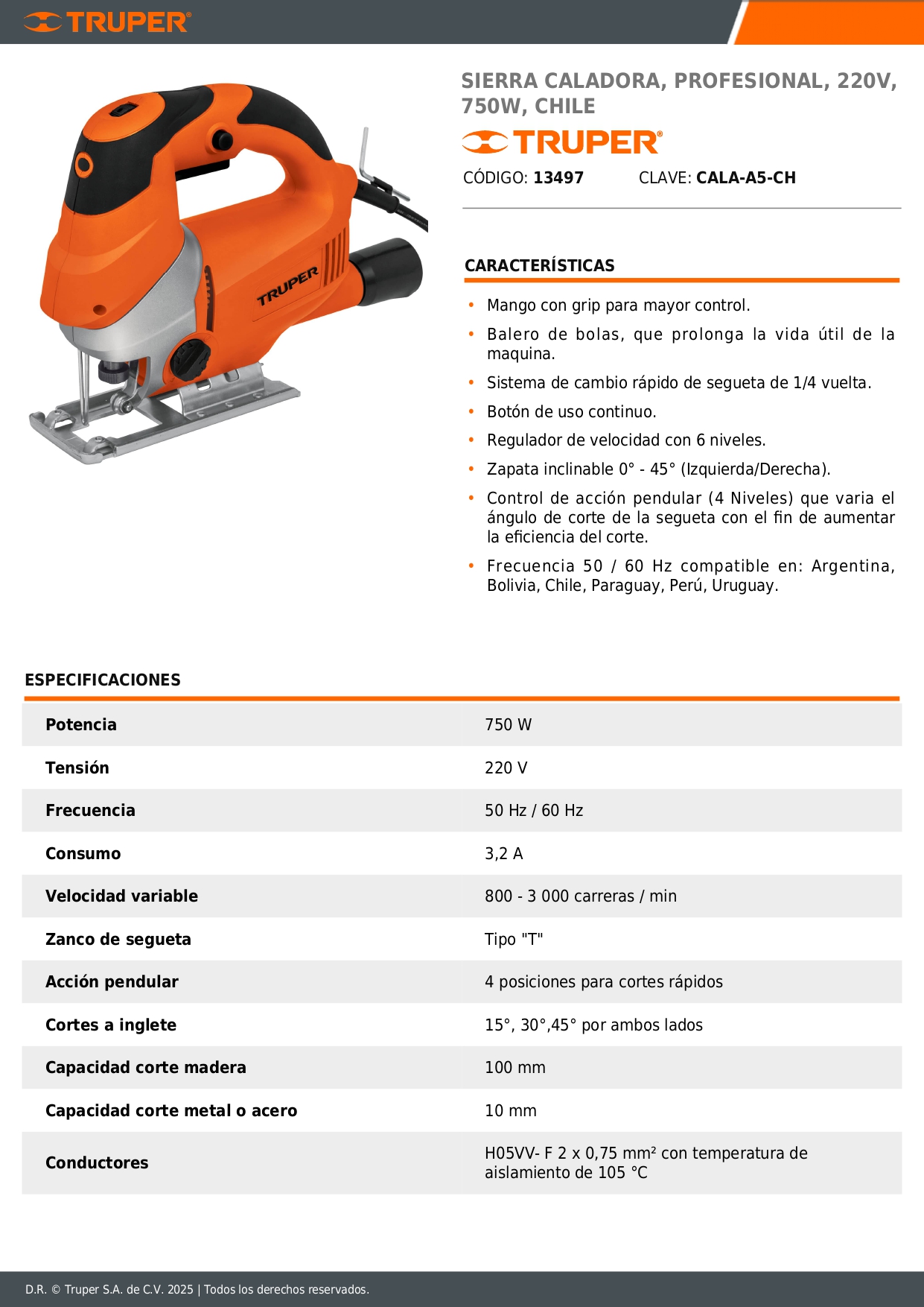SIERRA CALADORA, PROFESIONAL, 220V, 750W, CHILE CÓDIGO: 13497