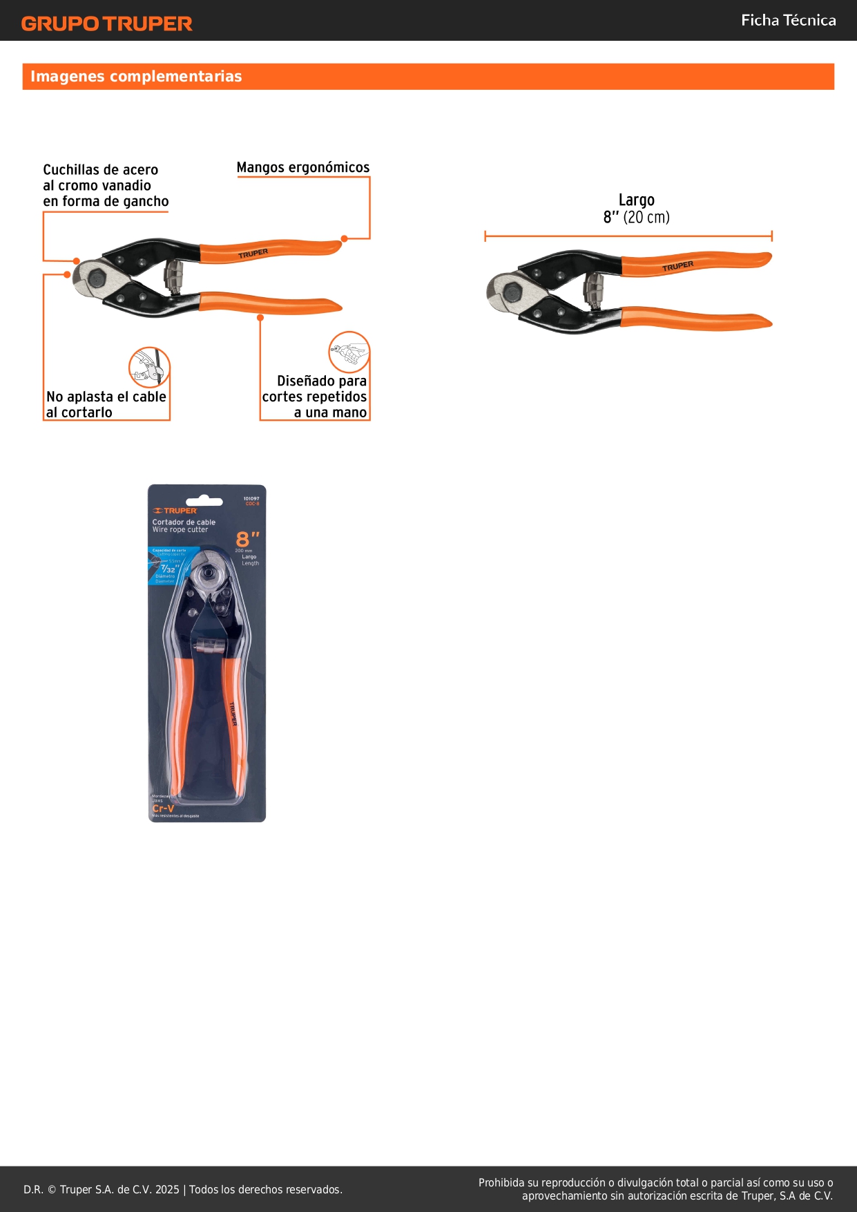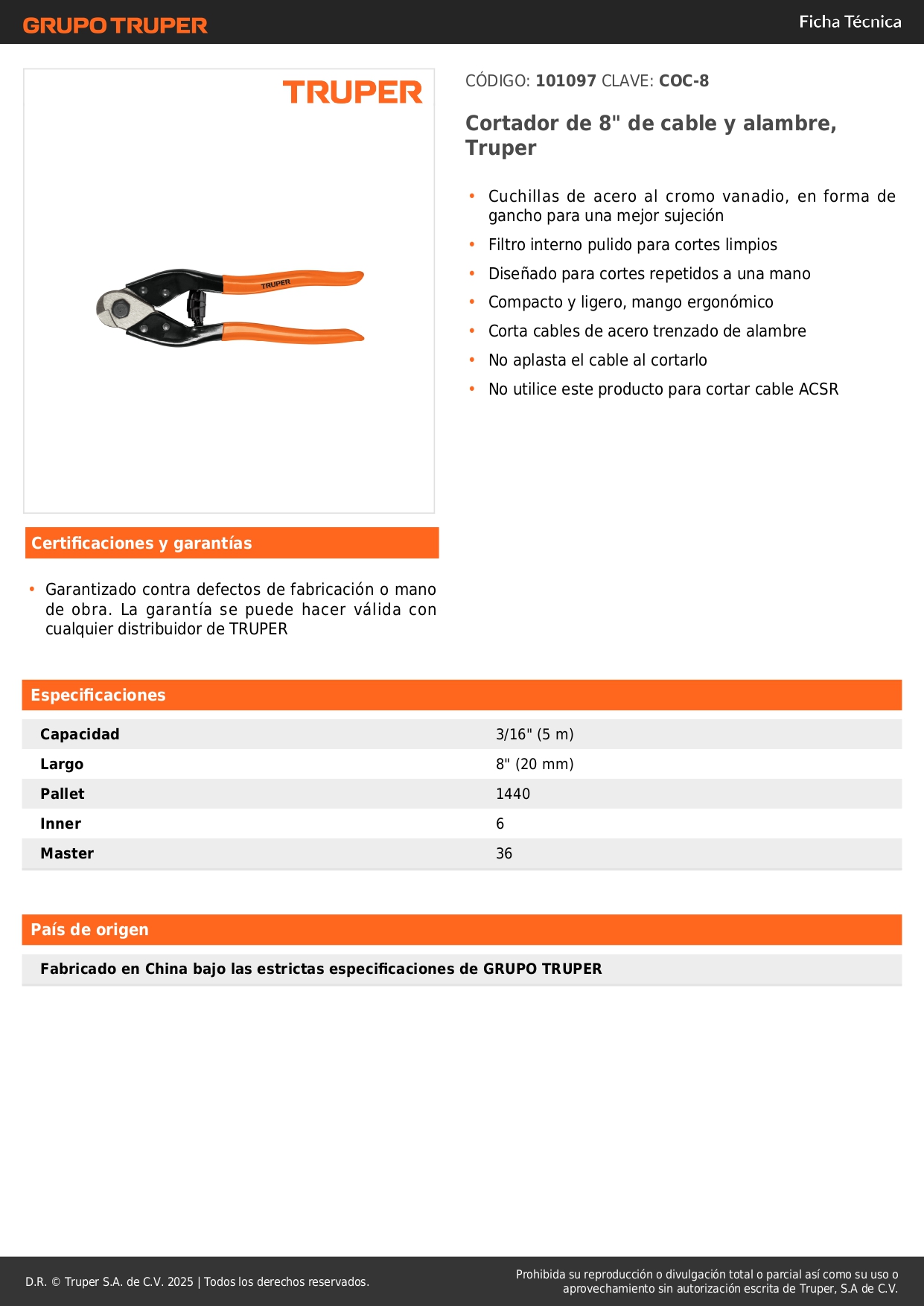 Cortador de 8´´ de cable y alambre, truper