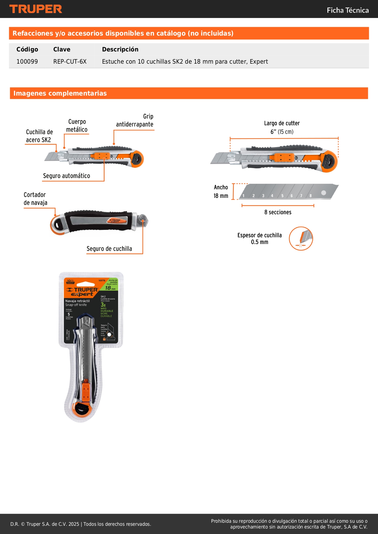 • Seguro y cambio automático de cuchilla