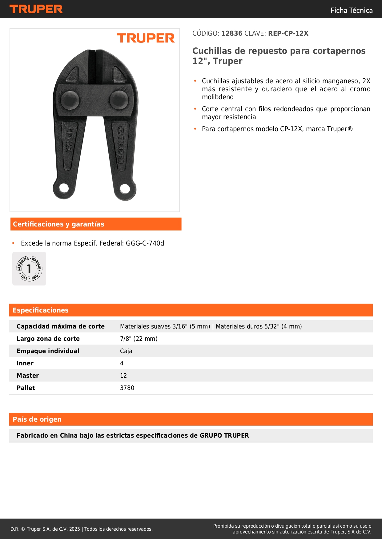 Corte central con filos redondeados que proporcionan mayor resistencia