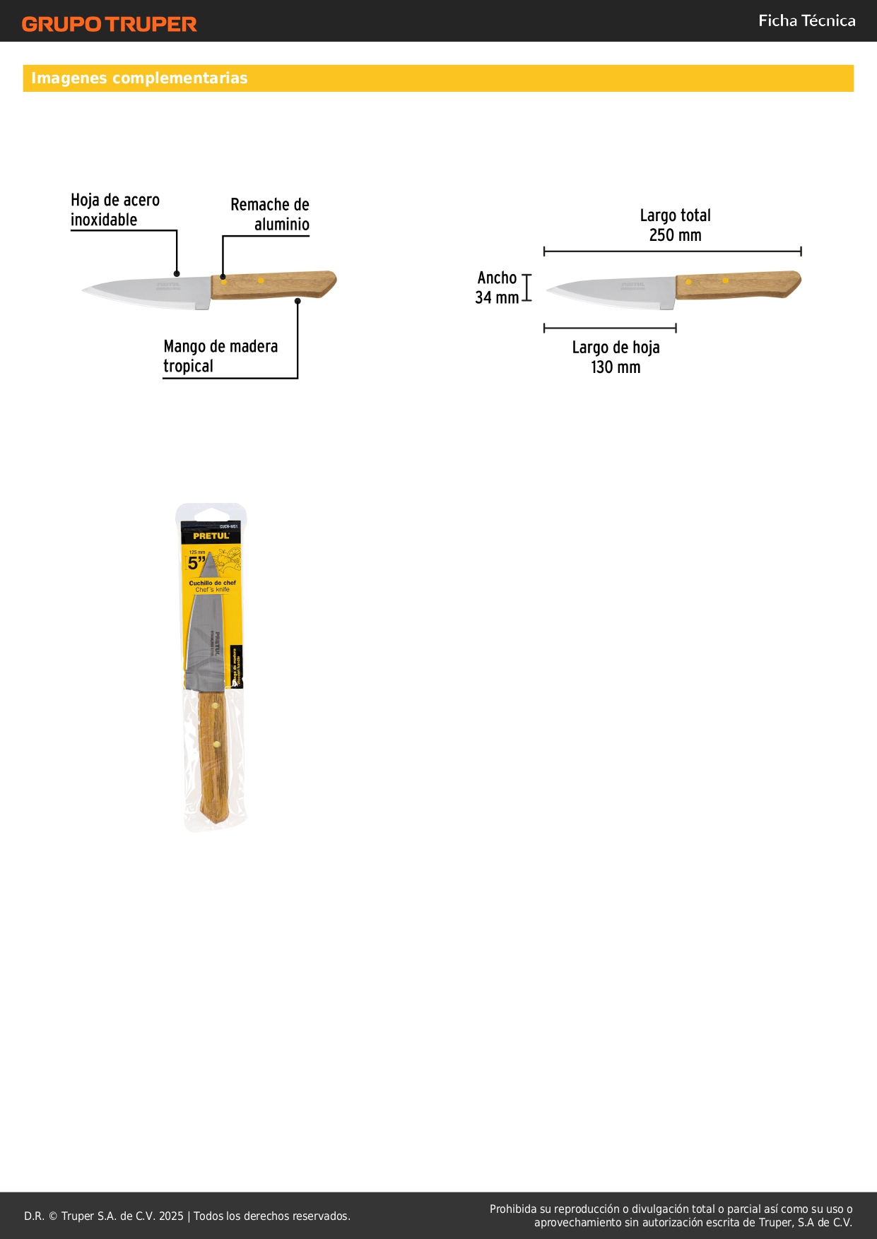 • Ideal para cortar, picar, rebanar carne, pescados, aves,