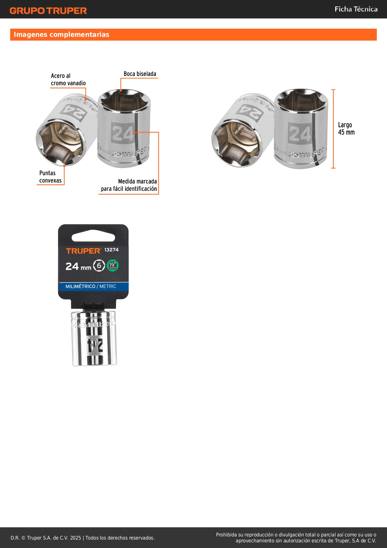 -Sistema de sujeción Truper-Drive con puntas convexas que aseguran y aumentan el torque sin dañar tuercas ni cabezas de tornillos
