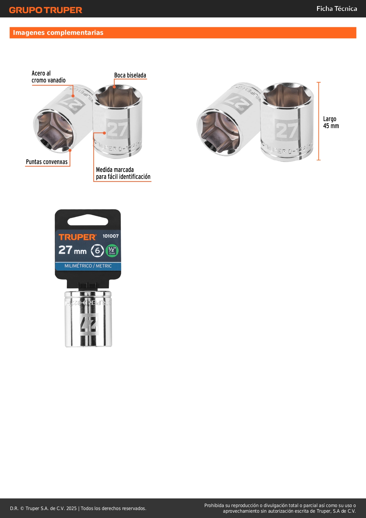 -Sistema de sujeción Truper-Drive con puntas convexas que aseguran y aumentan el torque sin dañar tuercas ni cabezas de tornillos