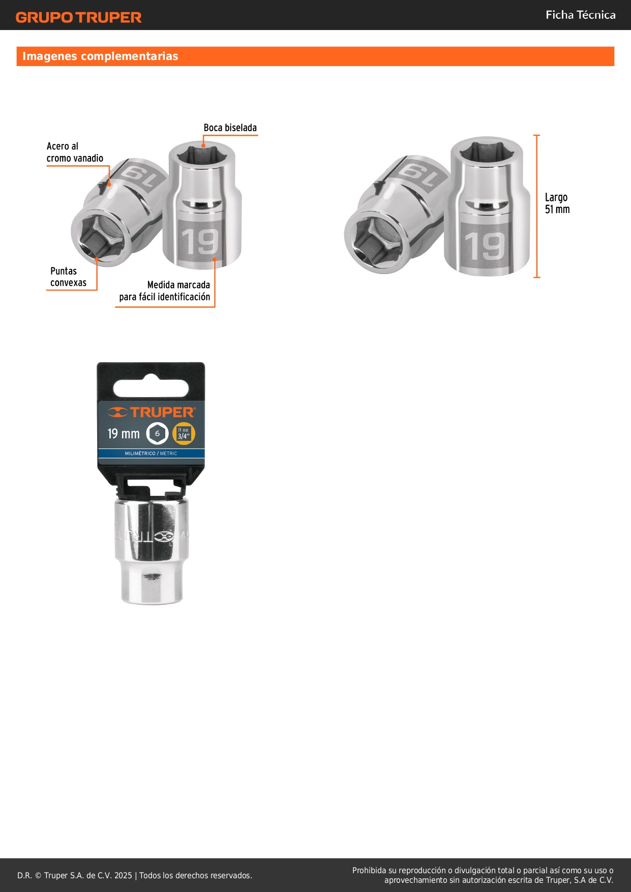 Dado hexagonal encastre 3/4´´ de 19 mm, truper