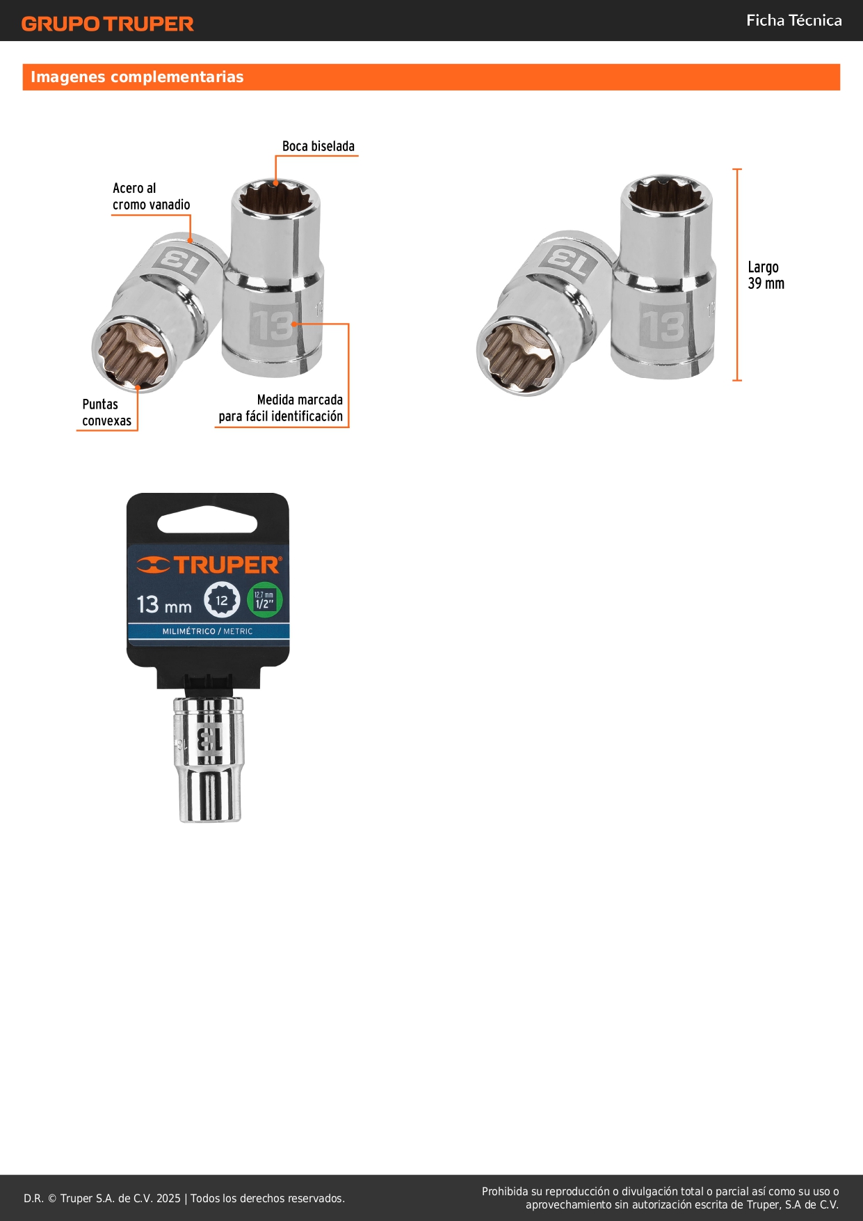 -Sistema de sujeción Truper-Drive con puntas convexas que aseguran y aumentan el torque sin dañar tuercas ni cabezas de tornillos